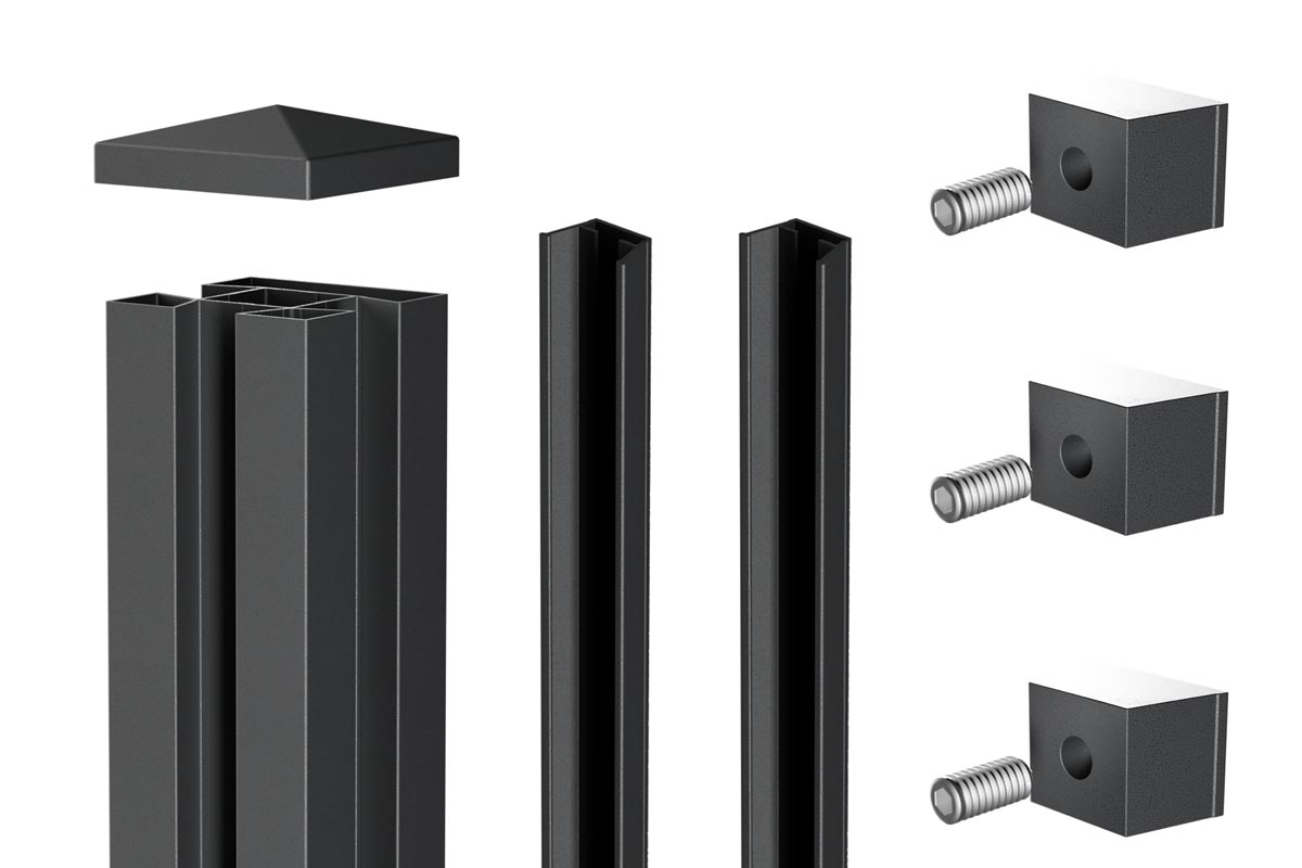 Alu-Anfangs-/Endpfosten 72x72 mm inkl. Zubehör | VIDUAL