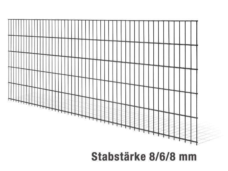 Die Doppelstabgittermatte MAX S ist aufgrund ihrer Stabilität mit einer Drahtstärke von 8mm waagerecht und 6mm senkrecht auch für kommunale und industrielle Zwecke geeignet. Sie können Höhen bis zu 2030 mm erhalten. Die Doppelstabgittermatte hat eine Länge von 2510mm.