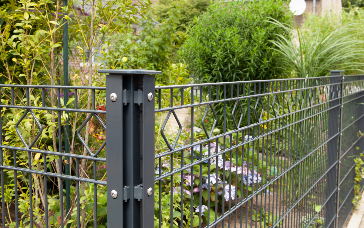 Die durchgehende Abdeckleiste verdeckt den Stoß der einzelnen Zaungitter und sorgt so für eine geschmackvolle Optik. Wählen Sie aus den Varianten feuerverzinkt oder den RAL Farben moosgrün beschichtet und anthrazit beschichtet aus. Auf Wunsch können Sie auch Sonderfarben oder Effektfarben erhalten.