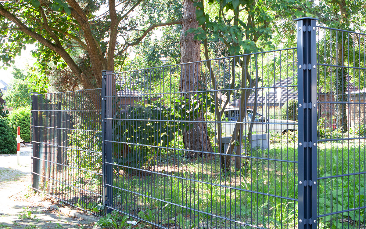 Die pulverbeschichteten Eckpfosten sind sendzimirverzinkt. Durch die zusätzliche Kunststoffbeschichtung erhöht sich der Korrosionsschutz um viele weitere Jahre.