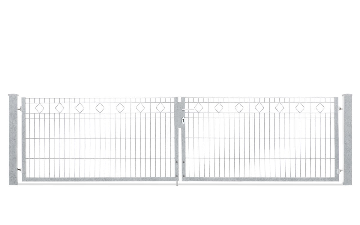 Das zweiflügelige Einfahrtstor VARIO Residenz BARCELONA ist das passende Tor aus Doppelstabgitter zur Schmuckzaunserie BARCELONA und lässt Sie die Öffnungsrichtung nach DIN links und rechts durch entsprechende Pfostenmontage bestimmen. Es kommt als Komplettpaket mit Schmuckzaunfüllung BARCELONA von 6/6/6 mm, einem Rahmen von 40/40 mm und den zugehörigen Torpfosten von 80/80 mm zu Ihnen nach Hause. Aus Torhöhen von 830 mm bis 1230 mm können Sie das für Sie passende Tor auswählen, das eine lichte Weite von 3280 mm hat. Inklusiv Schloss Aluminium Klinke und Profilzylinder.