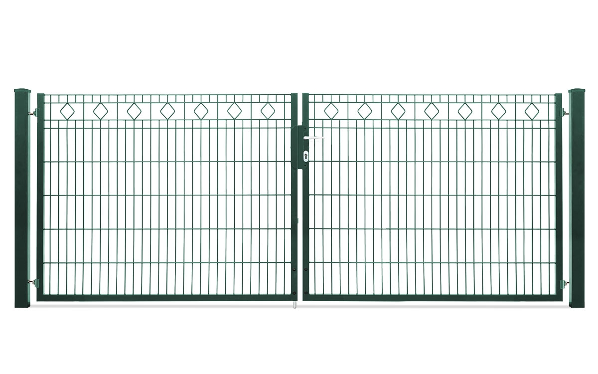 Das zweiflügelige Einfahrtstor VARIO Residenz BARCELONA ist das passende Tor aus Doppelstabgitter zur Schmuckzaunserie BARCELONA und lässt Sie die Öffnungsrichtung nach DIN links und rechts durch entsprechende Pfostenmontage bestimmen. Es kommt als Komplettpaket mit Schmuckzaunfüllung BARCELONA von 6/6/6 mm, einem Rahmen von 40/40 mm und den zugehörigen Torpfosten von 80/80 mm zu Ihnen nach Hause. Aus Torhöhen von 830 mm bis 1230 mm können Sie das für Sie passende Tor auswählen, das eine lichte Weite von 3280 mm hat. Inklusiv Schloss Aluminium Klinke und Profilzylinder.