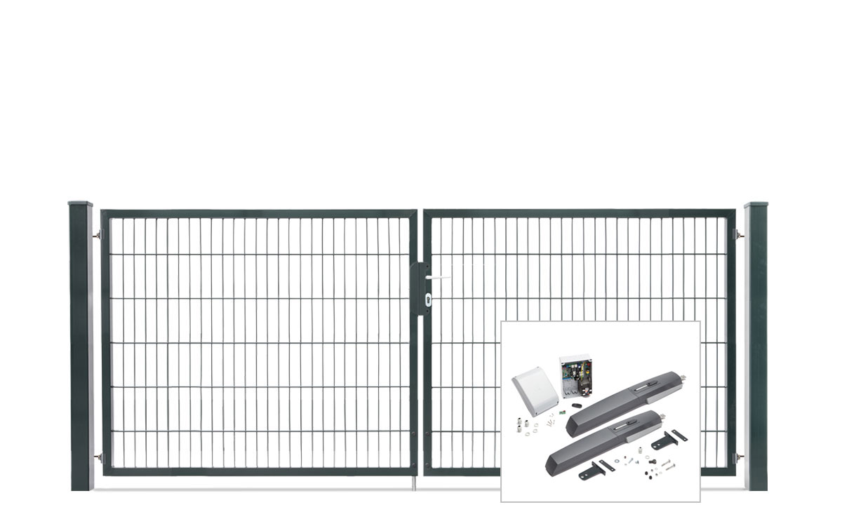 Das 2-flügelige Einfahrtstor VARIO compact verfügt über einen auf Gehrung verschweißten Rohrrahmen. Es ist ein stabiles und leichtgängiges Tor mit einem hochwertigen Abschluss durch stabilen Quadratrohrpfosten.