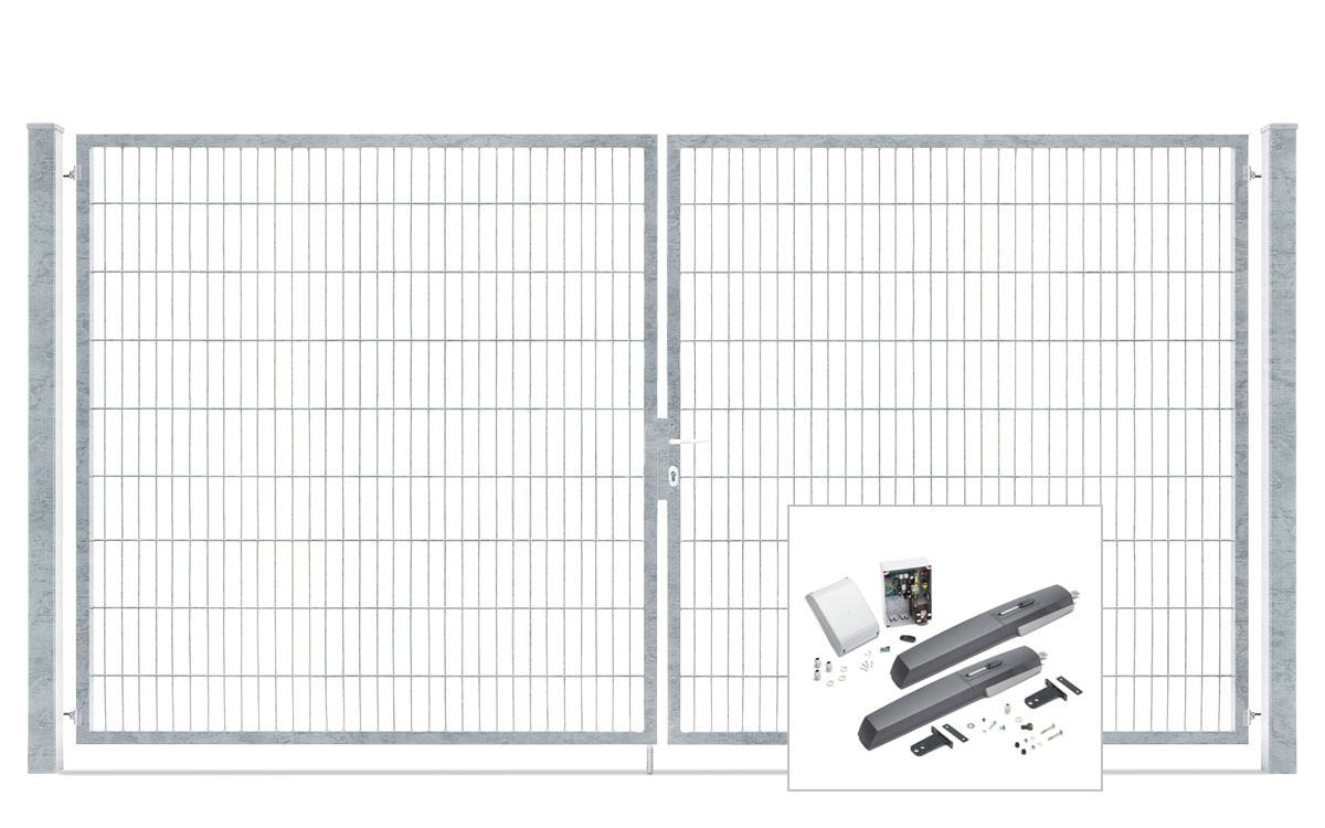 Das 2-flügelige Einfahrtstor VARIO compact verfügt über einen auf Gehrung verschweißten Rohrrahmen. Es ist ein stabiles und leichtgängiges Tor mit einem hochwertigen Abschluss durch stabilen Quadratrohrpfosten.