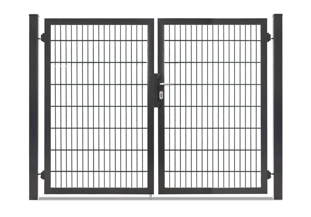 Die zweiflügelige Variante ist in sechs Breiten und sieben Höhen erhältlich, als zweiflügelige Toranlage bieten sich sowohl symmetrische als auch asymmetrische Kombinationsmöglichkeiten. Das Tor ist feuerverzinkt und pulverbeschichtet in RAL 7016 ab Lager verfügbar.