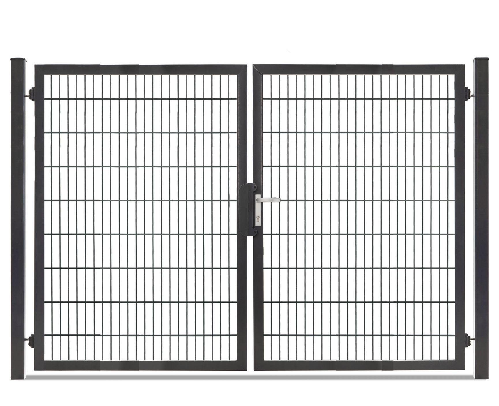 Die zweiflügelige Variante ist in sechs Breiten und sieben Höhen erhältlich, als zweiflügelige Toranlage bieten sich sowohl symmetrische als auch asymmetrische Kombinationsmöglichkeiten. Das Tor ist feuerverzinkt und pulverbeschichtet in RAL 7016 ab Lager verfügbar.
