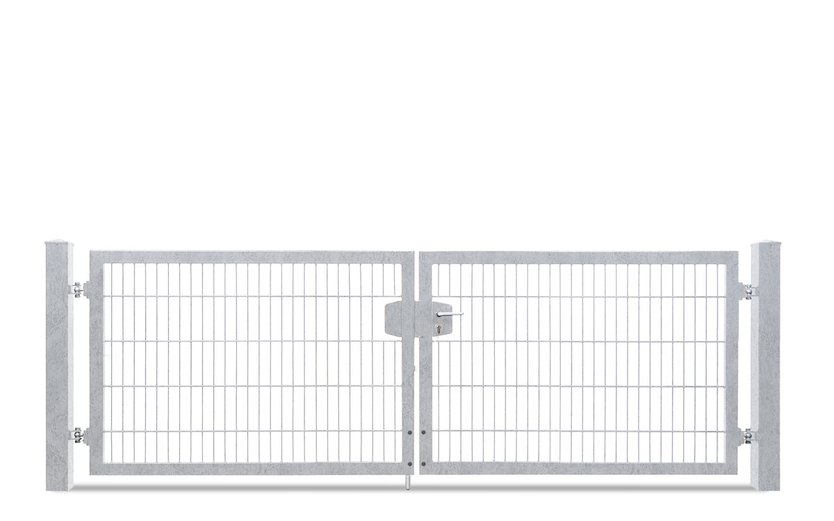 Das zweiflügelige Einfahrtstor VARIO trend lässt Sie die Öffnungsrichtung nach DIN links und rechts durch entsprechende Pfostenmontage bestimmen. Das variable Einfahrtstor kommt als Komplettpaket mit Doppelstabfüllung von 8/6/8mm, einem Rahmen von 60/40 mm und den zugehörigen Torpfosten je nach Höhe des Tores von 60/60 mm oder 80/80 mm zu Ihnen nach Hause. Aus zahlreichen Torhöhen und Torbreiten können Sie das für Sie passende Tor auswählen.