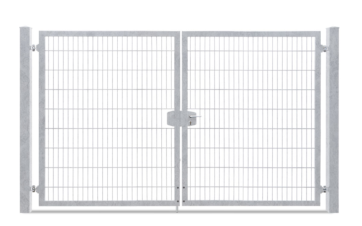 Das zweiflügelige Einfahrtstor VARIO trend lässt Sie die Öffnungsrichtung nach DIN links und rechts durch entsprechende Pfostenmontage bestimmen. Das variable Einfahrtstor kommt als Komplettpaket mit Doppelstabfüllung von 8/6/8mm, einem Rahmen von 60/40 mm und den zugehörigen Torpfosten je nach Höhe des Tores von 60/60 mm oder 80/80 mm zu Ihnen nach Hause. Aus zahlreichen Torhöhen und Torbreiten können Sie das für Sie passende Tor auswählen.