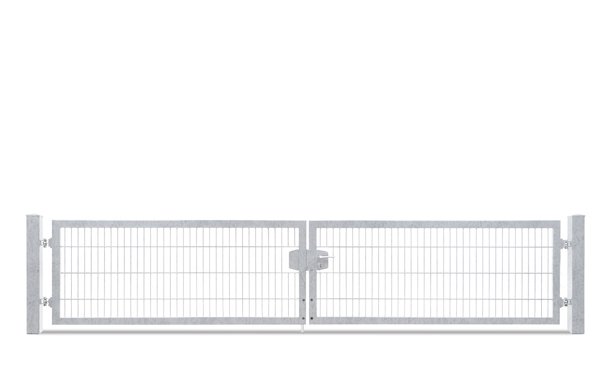 Das zweiflügelige Einfahrtstor VARIO trend lässt Sie die Öffnungsrichtung nach DIN links und rechts durch entsprechende Pfostenmontage bestimmen. Das variable Einfahrtstor kommt als Komplettpaket mit Doppelstabfüllung von 8/6/8mm, einem Rahmen von 60/40 mm und den zugehörigen Torpfosten je nach Höhe des Tores von 60/60 mm oder 80/80 mm zu Ihnen nach Hause. Aus zahlreichen Torhöhen und Torbreiten können Sie das für Sie passende Tor auswählen.