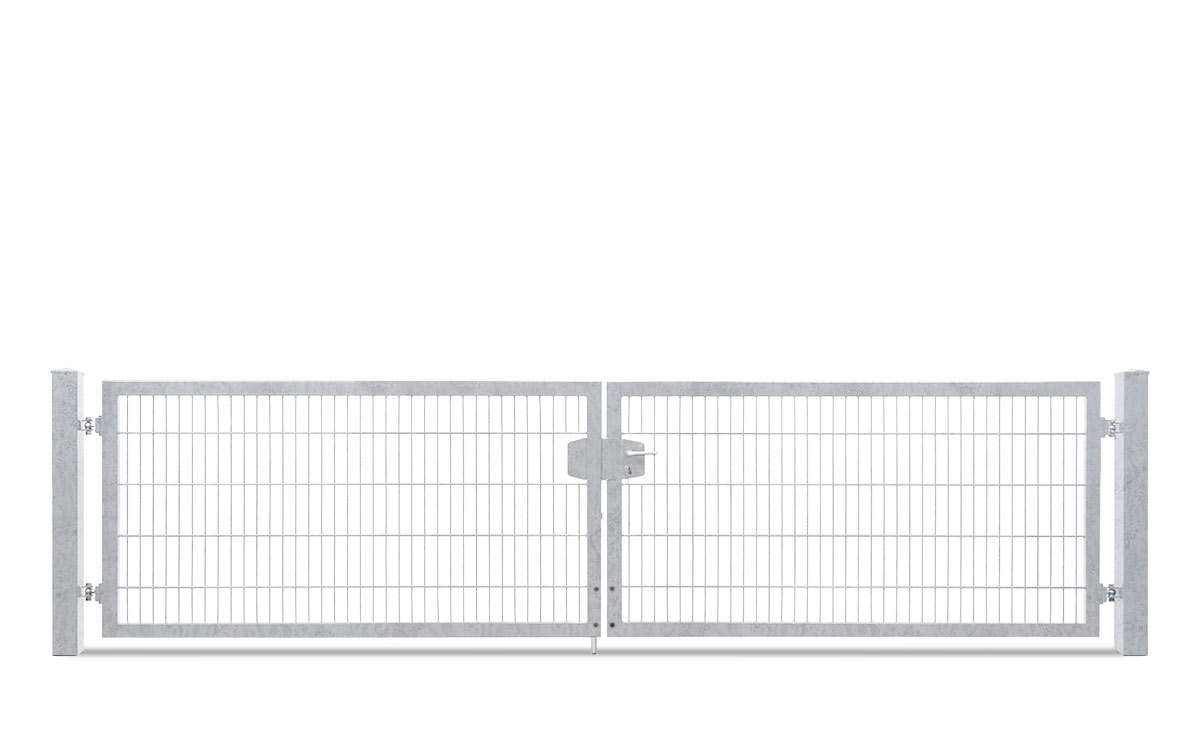 Das zweiflügelige Einfahrtstor VARIO trend lässt Sie die Öffnungsrichtung nach DIN links und rechts durch entsprechende Pfostenmontage bestimmen. Das variable Einfahrtstor kommt als Komplettpaket mit Doppelstabfüllung von 8/6/8mm, einem Rahmen von 60/40 mm und den zugehörigen Torpfosten je nach Höhe des Tores von 60/60 mm oder 80/80 mm zu Ihnen nach Hause. Aus zahlreichen Torhöhen und Torbreiten können Sie das für Sie passende Tor auswählen.
