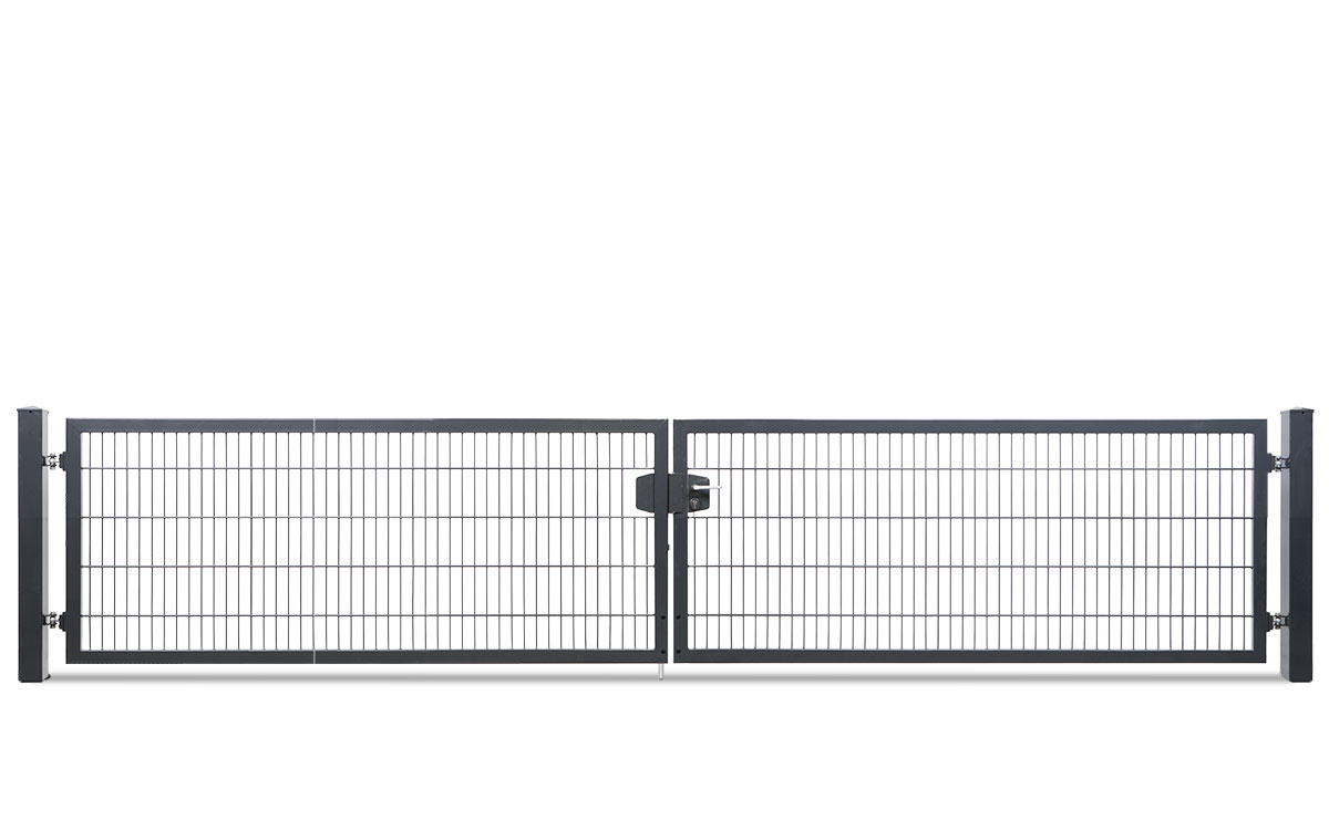 Das zweiflügelige Einfahrtstor VARIO trend lässt Sie die Öffnungsrichtung nach DIN links und rechts durch entsprechende Pfostenmontage bestimmen. Das variable Einfahrtstor kommt als Komplettpaket mit Doppelstabfüllung von 8/6/8mm, einem Rahmen von 60/40 mm und den zugehörigen Torpfosten je nach Höhe des Tores von 60/60 mm oder 80/80 mm zu Ihnen nach Hause. Aus zahlreichen Torhöhen und Torbreiten können Sie das für Sie passende Tor auswählen.