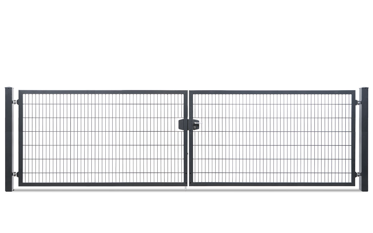 Das zweiflügelige Einfahrtstor VARIO trend lässt Sie die Öffnungsrichtung nach DIN links und rechts durch entsprechende Pfostenmontage bestimmen. Das variable Einfahrtstor kommt als Komplettpaket mit Doppelstabfüllung von 8/6/8mm, einem Rahmen von 60/40 mm und den zugehörigen Torpfosten je nach Höhe des Tores von 60/60 mm oder 80/80 mm zu Ihnen nach Hause. Aus zahlreichen Torhöhen und Torbreiten können Sie das für Sie passende Tor auswählen.