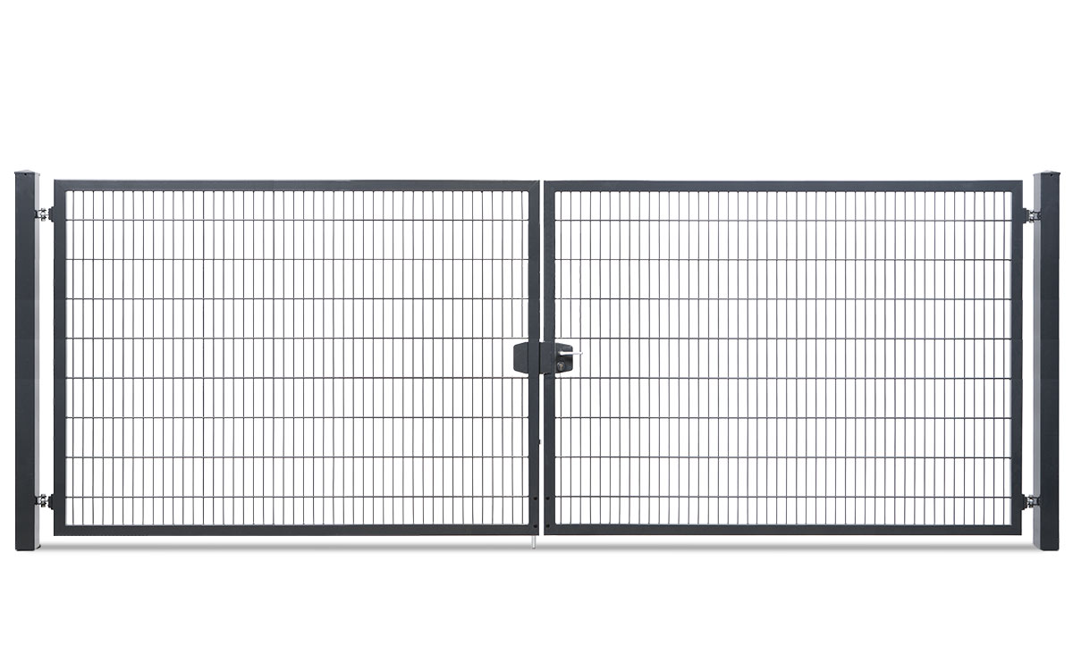 Das zweiflügelige Einfahrtstor VARIO trend lässt Sie die Öffnungsrichtung nach DIN links und rechts durch entsprechende Pfostenmontage bestimmen. Das variable Einfahrtstor kommt als Komplettpaket mit Doppelstabfüllung von 8/6/8mm, einem Rahmen von 60/40 mm und den zugehörigen Torpfosten je nach Höhe des Tores von 60/60 mm oder 80/80 mm zu Ihnen nach Hause. Aus zahlreichen Torhöhen und Torbreiten können Sie das für Sie passende Tor auswählen.