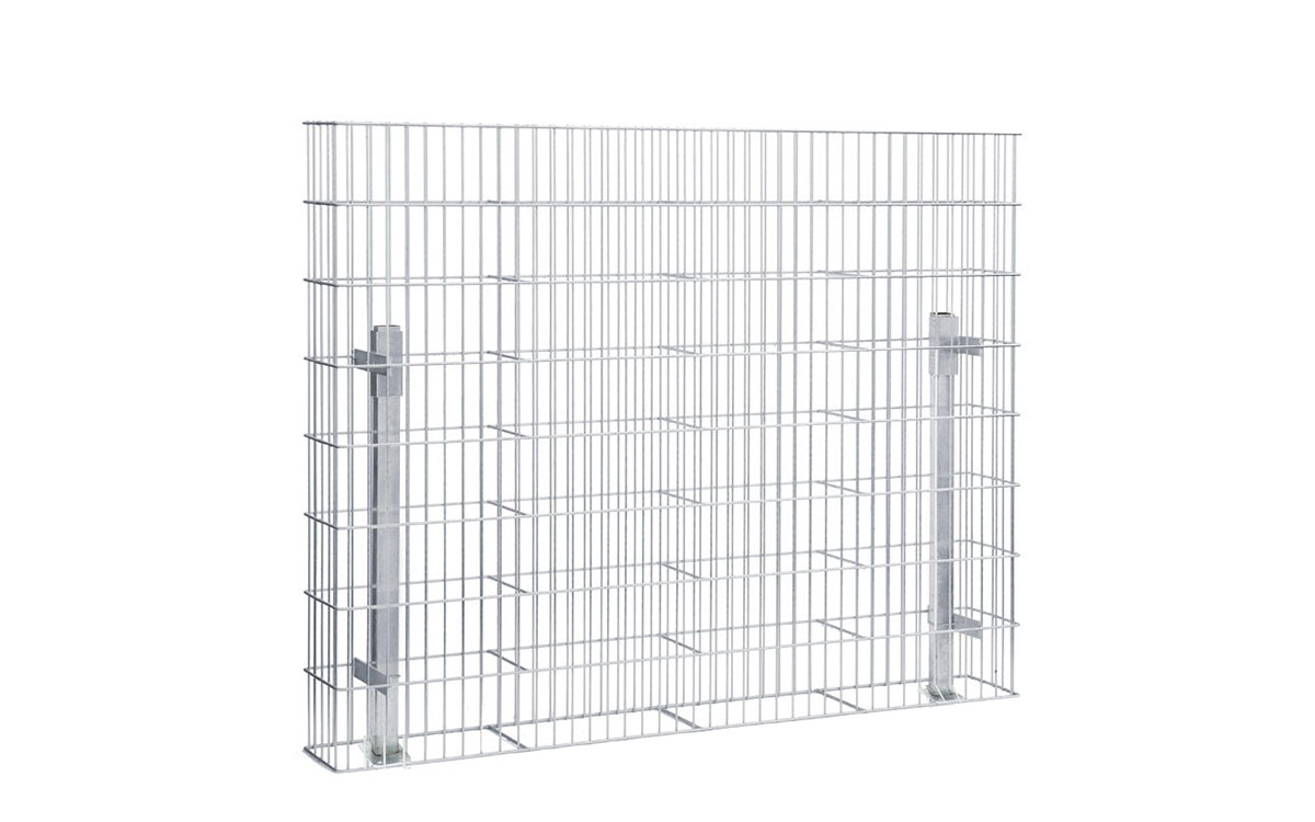 Im Lieferumfang sind zwei Pfosten enthalten. Je nach Wunsch können die Gabionen einbetoniert oder zur Dübelmontage ausgeführt werden. Die Montage geht durch die Hülsen und das mitgelieferte Zubehör sehr schnell und einfach von der Hand. Erhältlich ist das Modell JUMBO in feuerverzinkt nach DIN EN ISO 1461.