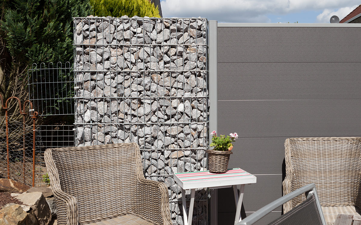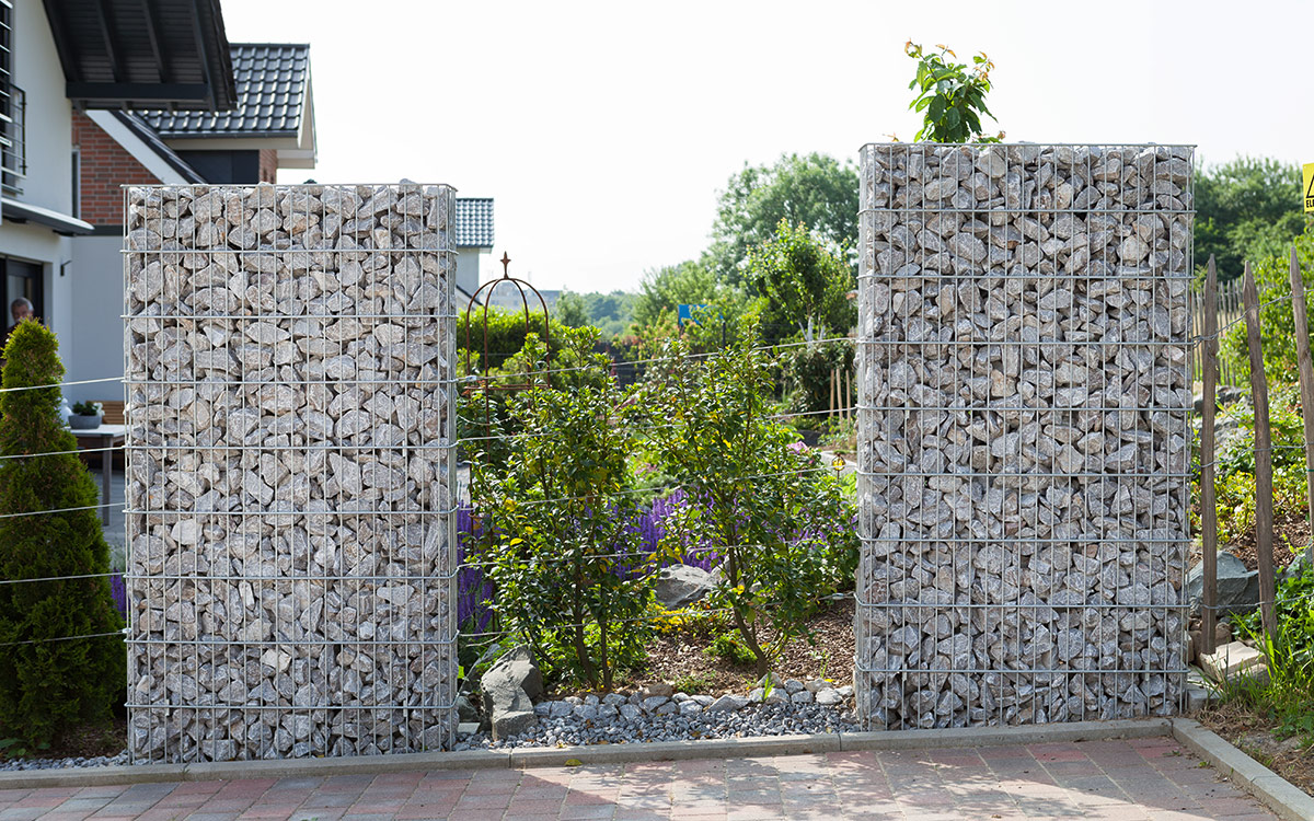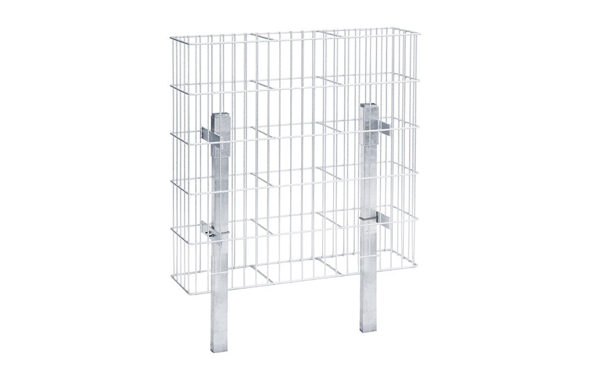 Im Lieferumfang sind zwei Pfosten enthalten. Je nach Wunsch können die Gabionen einbetoniert oder zur Dübelmontage ausgeführt werden. Die Montage geht durch die Hülsen und das mitgelieferte Zubehör sehr schnell und einfach von der Hand. Erhältlich ist das Modell JUMBO in feuerverzinkt nach DIN EN ISO 1461.