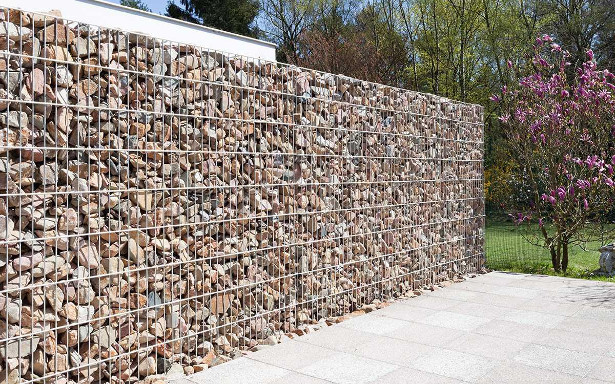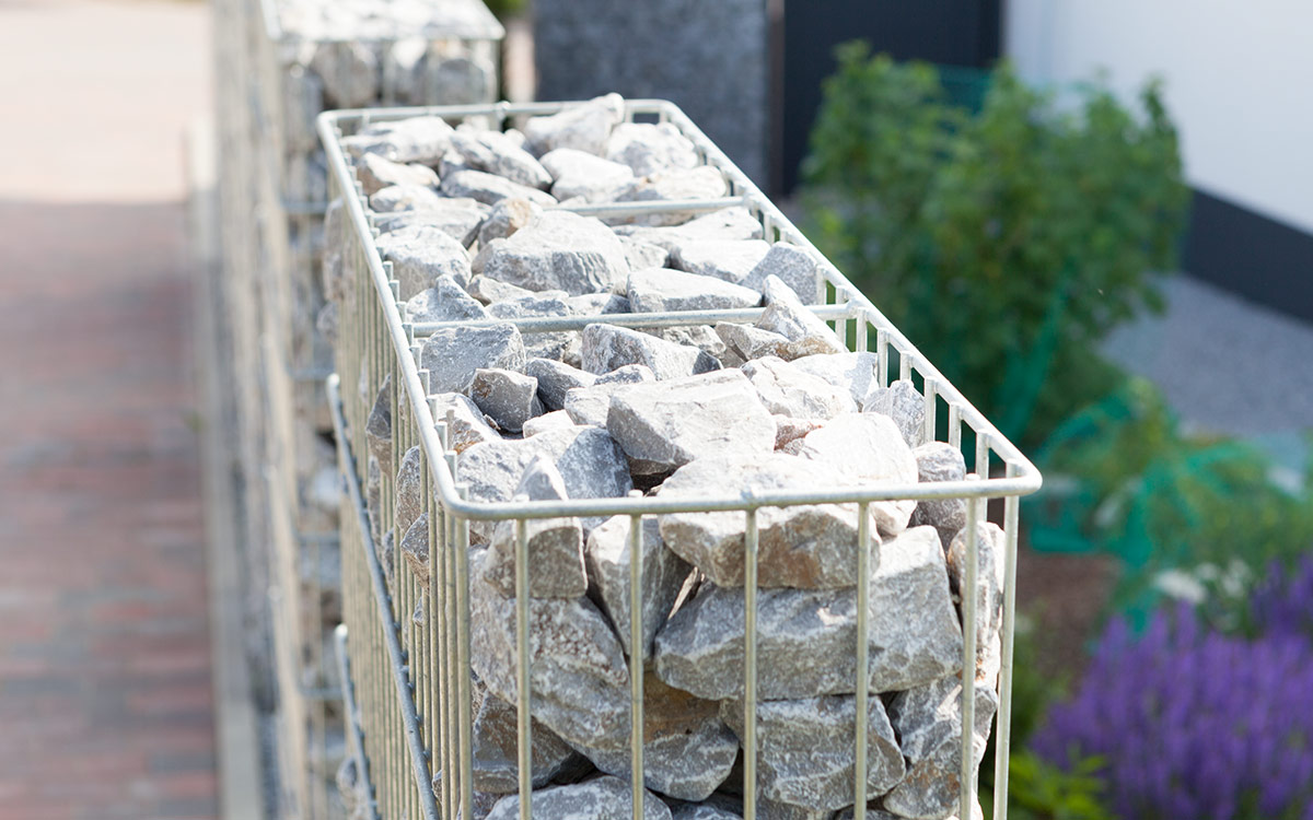 Das Gabionen-System JUMBO ist in zwei Breiten und fünf Höhen verfügbar und besticht durch eine filigrane Optik. Durch Einfachstäbe von einer Drahtstärke 8/6 mm und einer Maschung von 50 x 200 mm können schnell und einfach große Steinwände realisiert werden. Die mitgelieferten Distanzhalter sind bereits angeschweißt. Diese sorgen für ein besseres Befüllen und mehr Stabilität. Der Korb wird vollständig geschweißt geliefert.