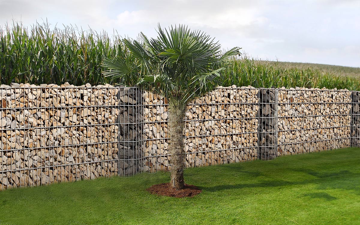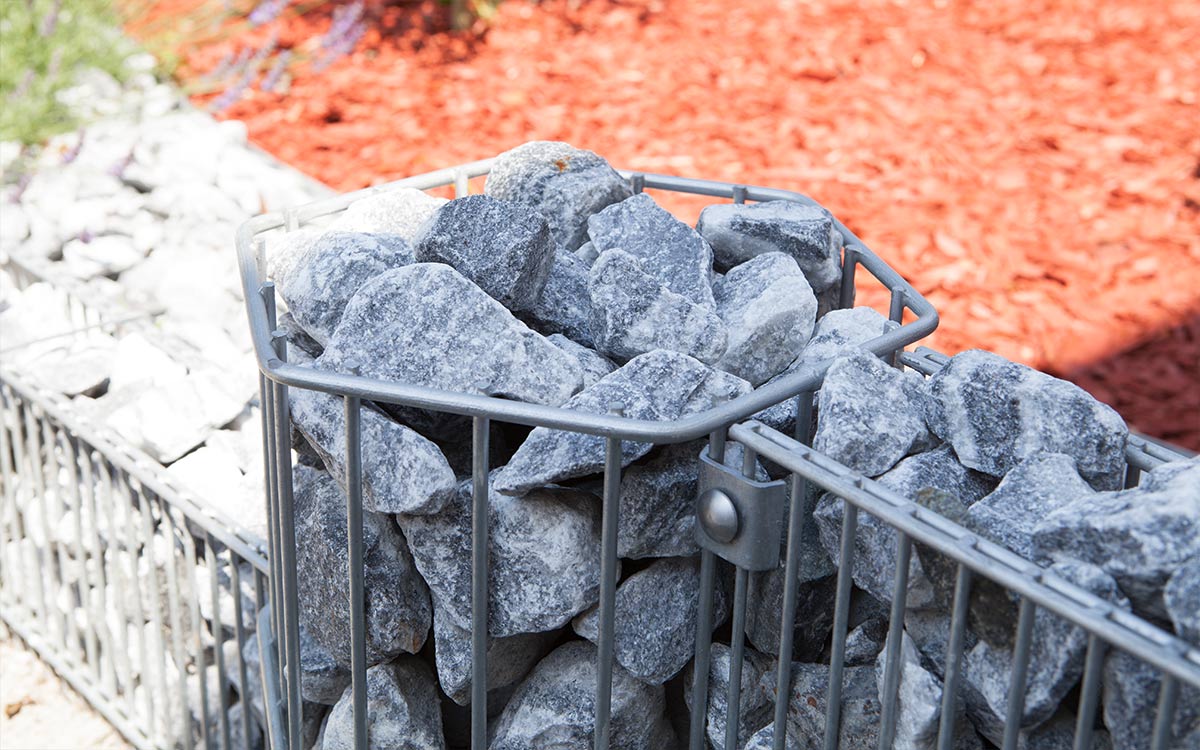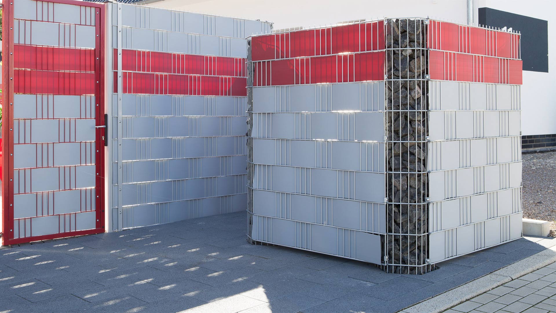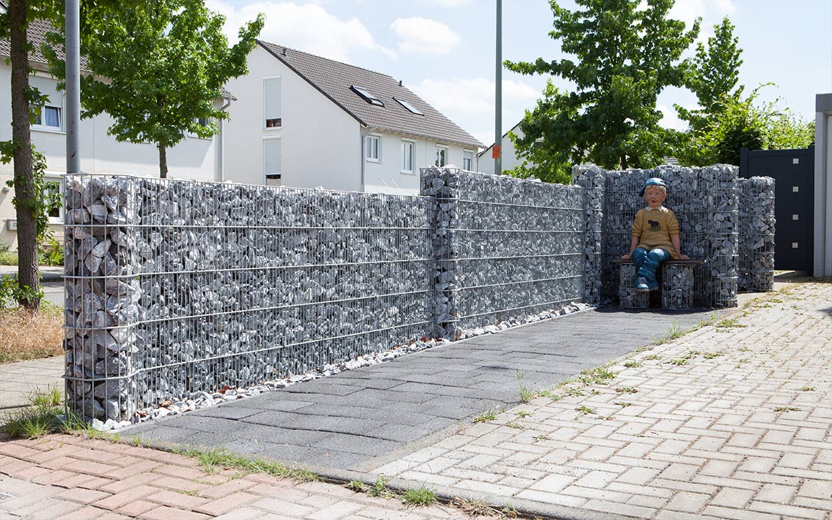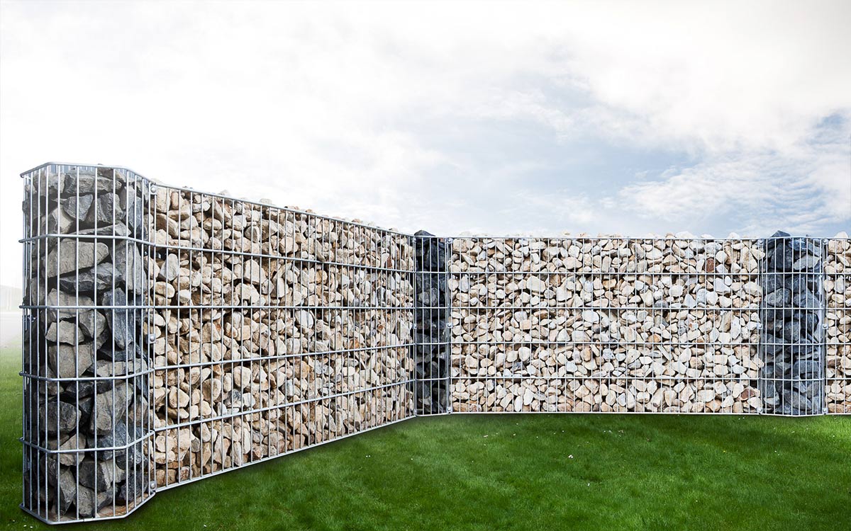 Säulen und Steinfüllungen der Gabionen-Zaunsysteme lassen sich individuell kombinieren - der Kreativität sind keine Grenzen gesetzt: ob solitär als Dekoration im Außenbereich, als Pfosten für Holzelemente, Doppelstab- oder Sichtschutzgitter oder in Verbindung mit zwei parallel laufenden Gittern als Steinwand.