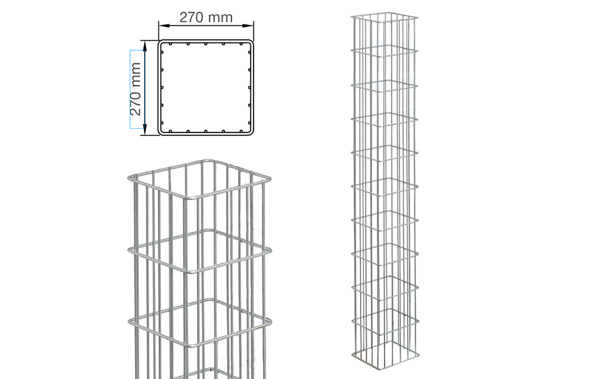 Gabionensäulen werden entweder einbetoniert oder auf ein Fundament mit Fußplatte aufgedübelt. Idealerweise werden die Säulen 60 cm tief einbetoniert, dementsprechend hoch sollte die Säule gewählt werden.