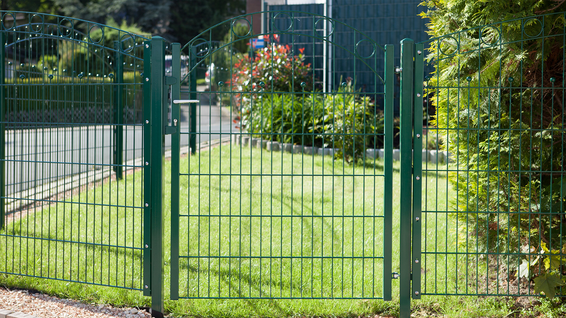 Wählen Sie Ihr neues Schmuckzauntor aus den Varianten feuerverzinkt, moosgrün beschichtet oder dunkelgrau beschichtet aus. Auf Wunsch können Sie auch Sonderfarben oder Effektfarben erhalten.