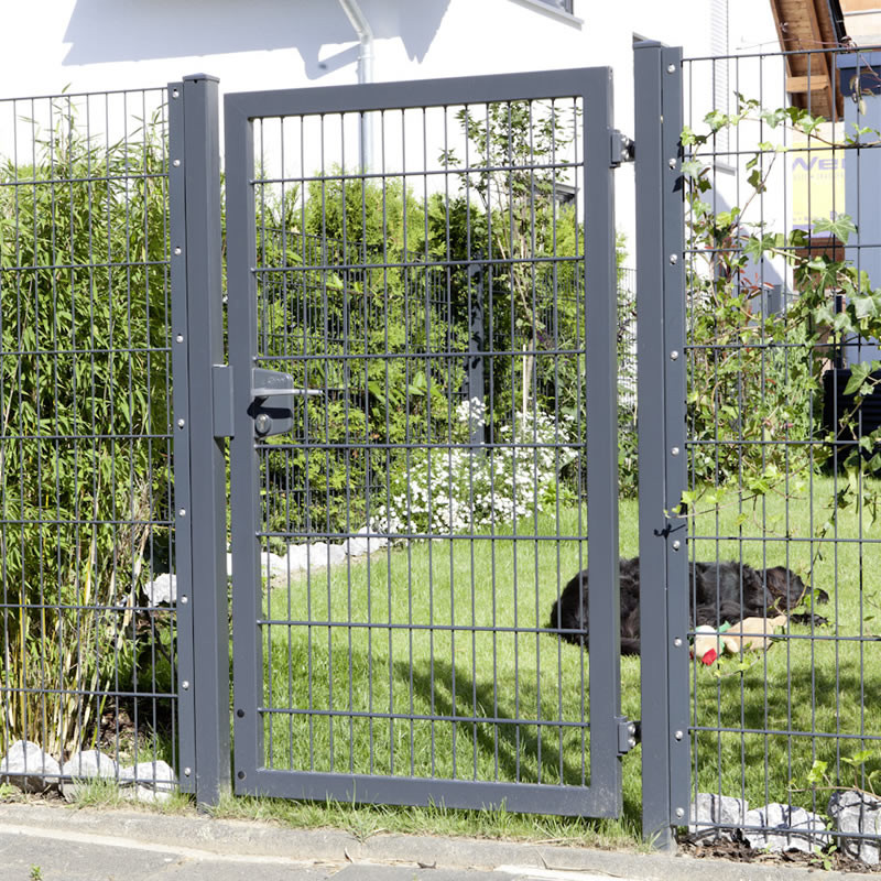 Das einflügelige Drehflügeltor VARIO Trend lässt Sie die Öffnungsrichtung nach DIN links und rechts durch entsprechende Pfostenmontage bestimmen. Das variable Gartentor kommt als Komplettpaket mit Doppelstabfüllung von 8/6/8mm, einem Rahmen von 60/40 mm und den zugehörigen Torpfosten je nach Höhe des Tores von 60/60 mm oder 80/80 mm zu Ihnen nach Hause. Es sind Höhen von 800 mm bis 2000 mm erhältlich und lichte Weiten von 1000 mm bis 2510 mm.
