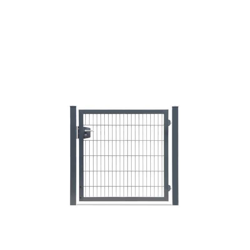 Das einflügelige Drehflügeltor VARIO Trend lässt Sie die Öffnungsrichtung nach DIN links und rechts durch entsprechende Pfostenmontage bestimmen. Das variable Gartentor kommt als Komplettpaket mit Doppelstabfüllung von 8/6/8mm, einem Rahmen von 60/40 mm und den zugehörigen Torpfosten je nach Höhe des Tores von 60/60 mm oder 80/80 mm zu Ihnen nach Hause. Es sind Höhen von 800 mm bis 2000 mm erhältlich und lichte Weiten von 1000 mm bis 2510 mm.