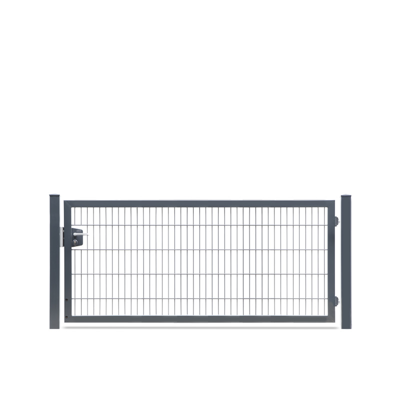 Das einflügelige Drehflügeltor VARIO Trend lässt Sie die Öffnungsrichtung nach DIN links und rechts durch entsprechende Pfostenmontage bestimmen. Das variable Gartentor kommt als Komplettpaket mit Doppelstabfüllung von 8/6/8mm, einem Rahmen von 60/40 mm und den zugehörigen Torpfosten je nach Höhe des Tores von 60/60 mm oder 80/80 mm zu Ihnen nach Hause. Es sind Höhen von 800 mm bis 2000 mm erhältlich und lichte Weiten von 1000 mm bis 2510 mm.