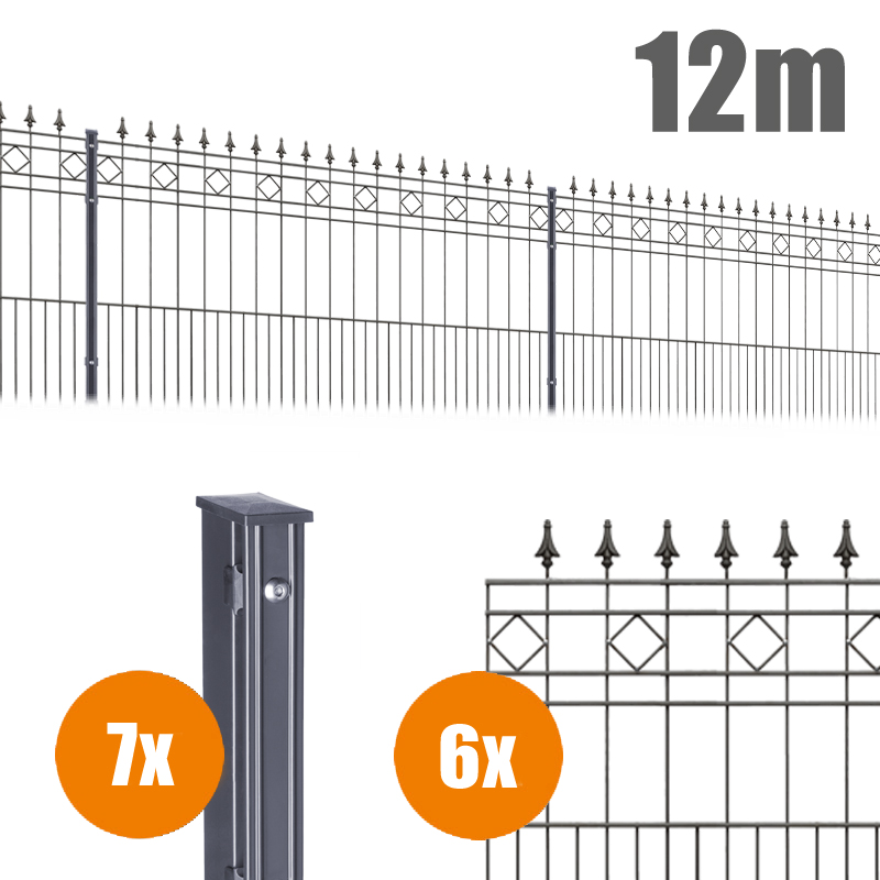 Feuerverzinkung und hochwertige Pulverbeschichtung garantieren eine außerordentlich lange Lebensdauer. Der Schmuckzaun RIMINI ist in der Farbe anthrazitgrau (RAL 7016) erhältlich. Als Höhen stehen 0.9 m und 1.1 m zur Verfügung. Darüber hinaus sind auch passende einflügelige Gartentore erhältlich.