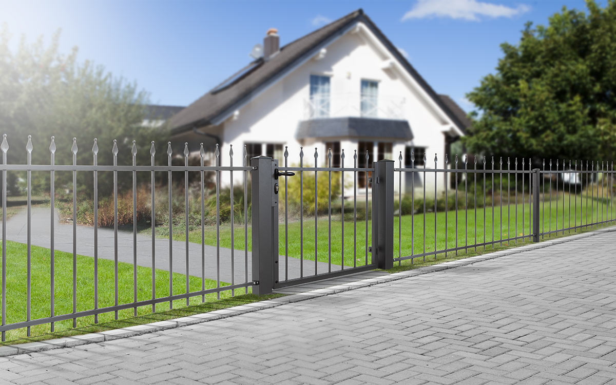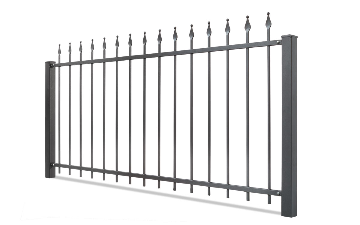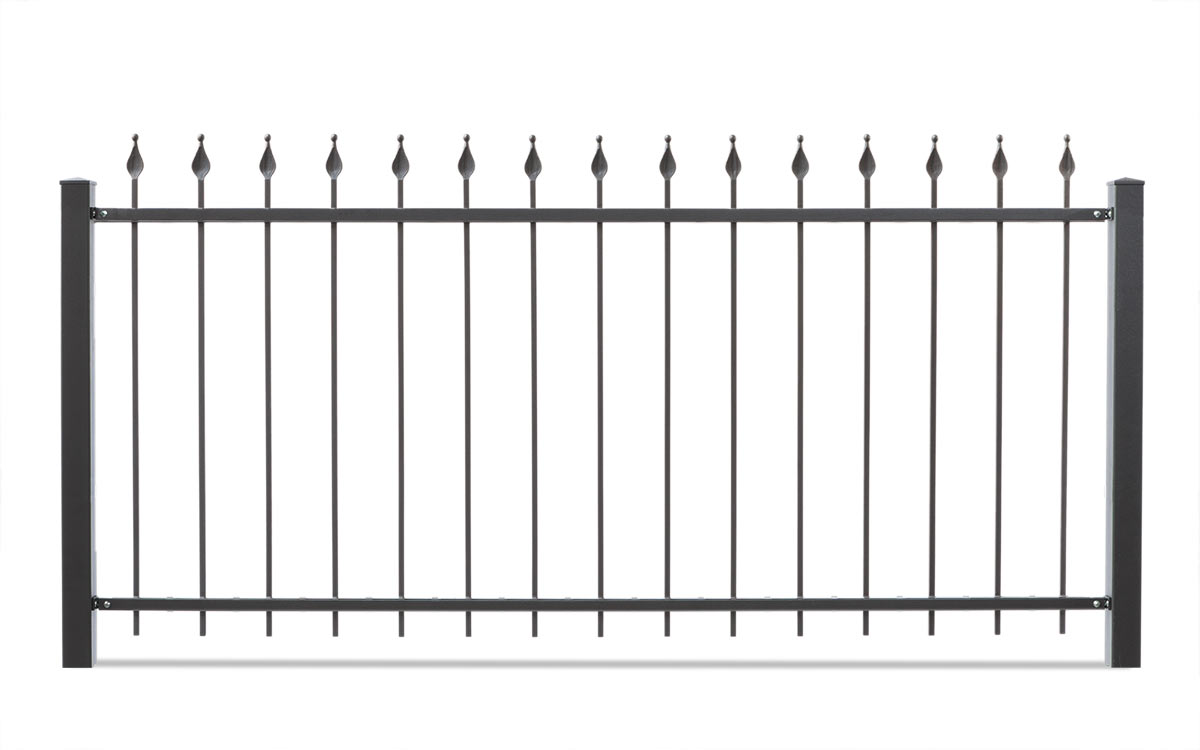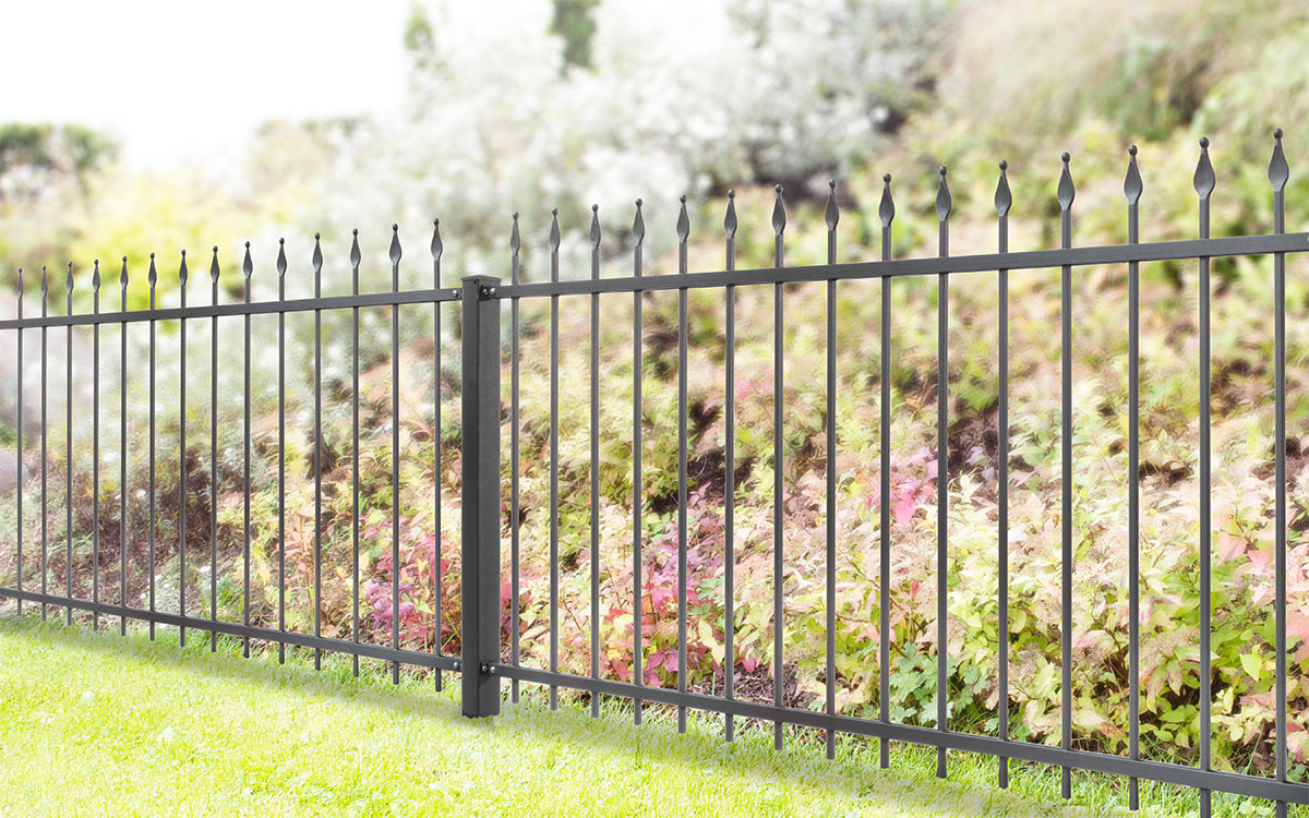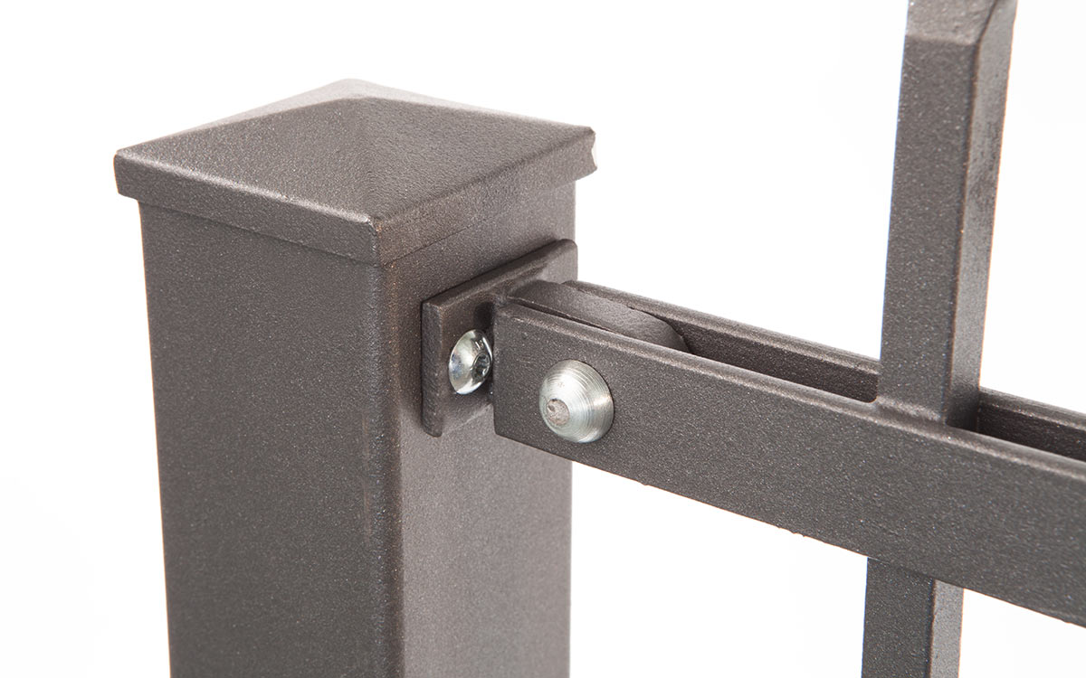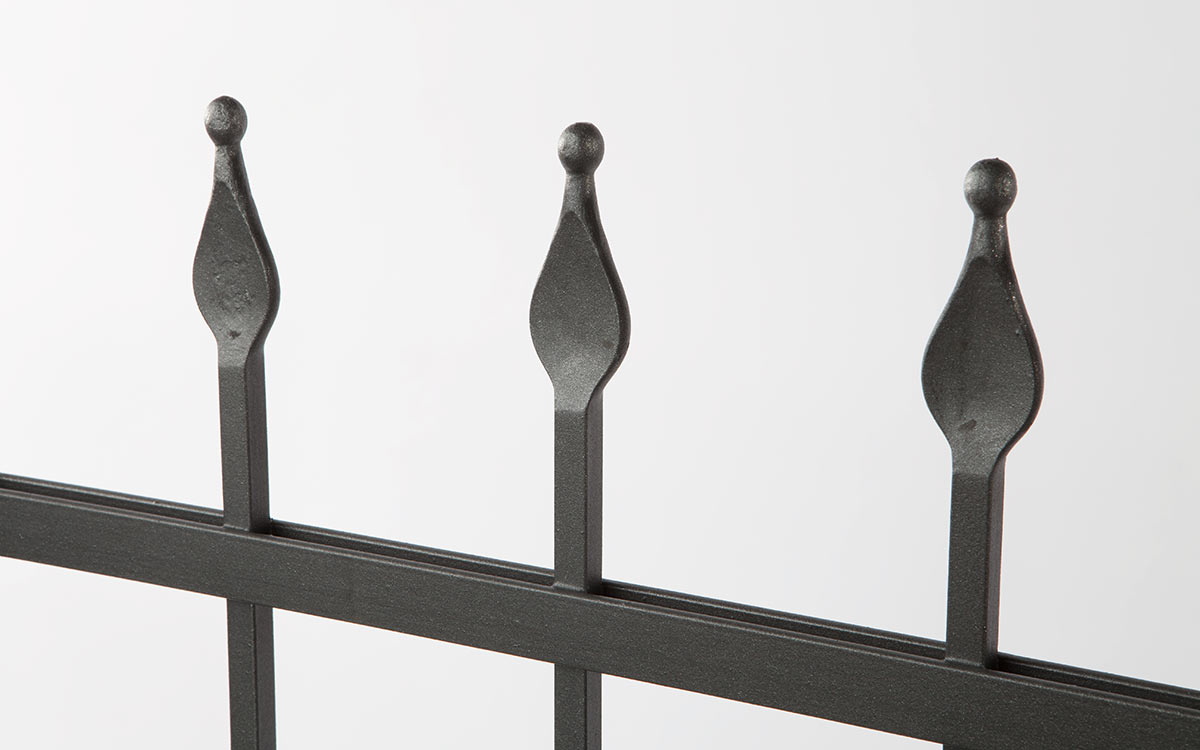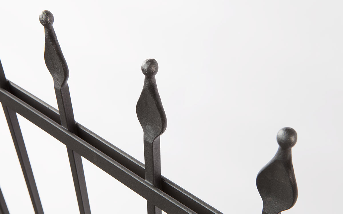 Die Zaunelemente sind feuerverzinkt, nach DB703 pulverbeschichtet und verfügen je nach Modell über angeschmiedete Spitzen. Durch die variable Befestigungsmöglichkeit ist auch ein Höhenausgleich bei Gefälle einfach zu realisieren.