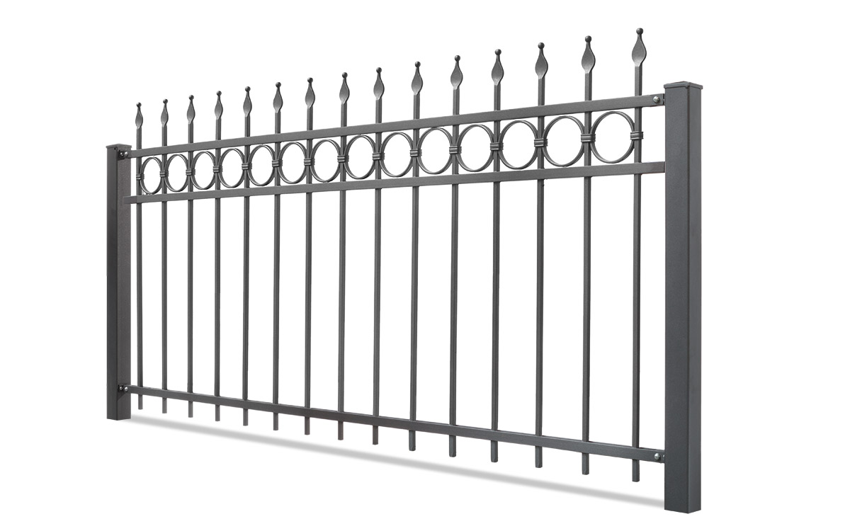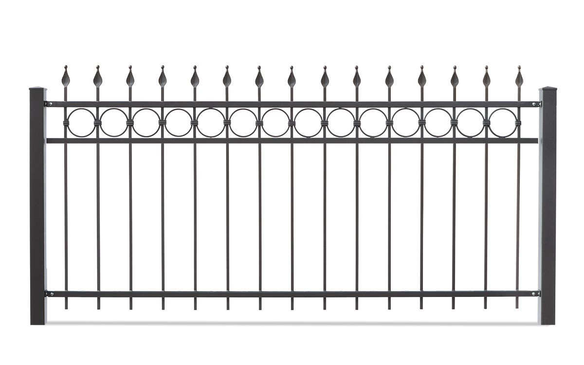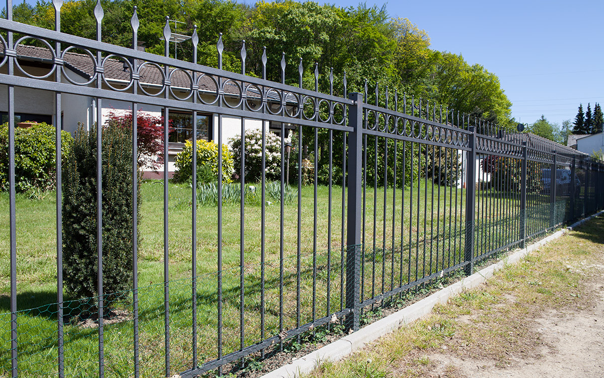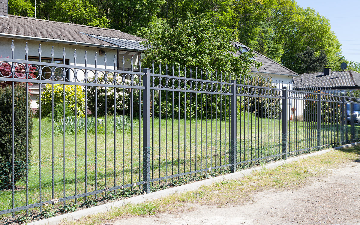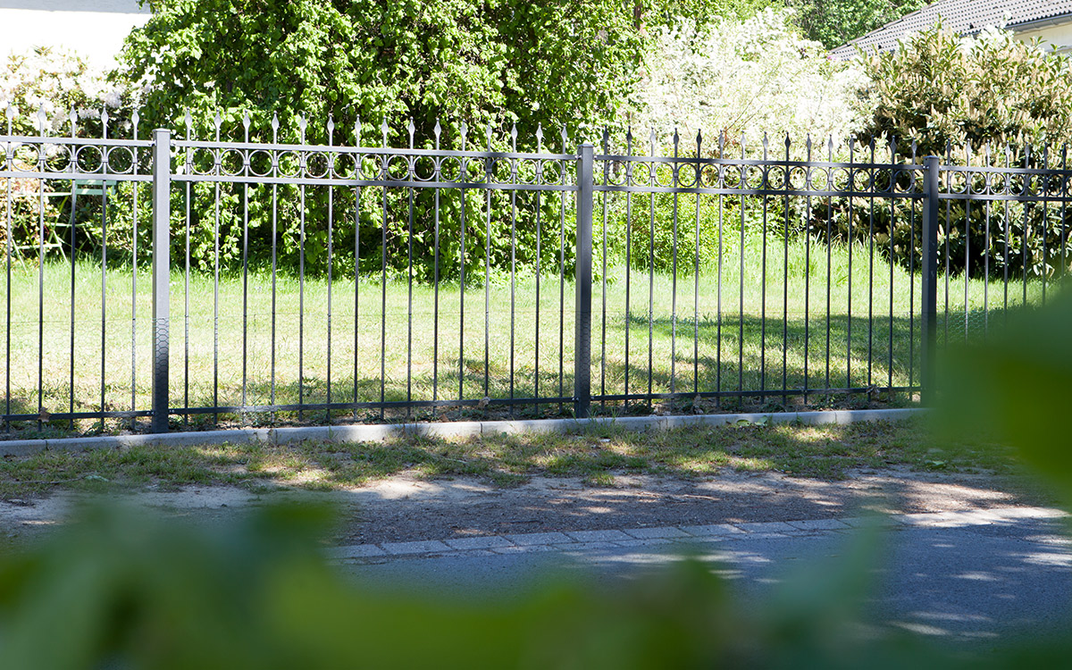 Die Zaunelemente sind feuerverzinkt, nach DB703 pulverbeschichtet und verfügen je nach Modell über angeschmiedete Spitzen. Durch die variable Befestigungsmöglichkeit ist auch ein Höhenausgleich bei Gefälle einfach zu realisieren.