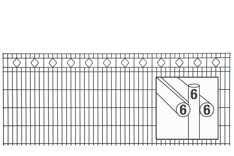 Der elegante Schmuckzaun BARCELONA ist zeitlos und passt sich vielen Stilrichtungen und Bepflanzungsarten an. Dabei bietet er Schutz und wahrt die Privatsphäre. Im obersten Segment der Doppelstabgittermatte befinden sich kleine rautenförmige Zierelemente, die durch waagerechte Einfassungen hervorgehoben werden. Der Schmuckzaun BARCELONA besteht aus massiven miteinander verschweißten Stahldrähten.
