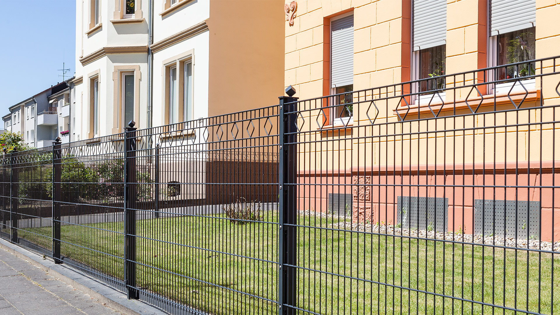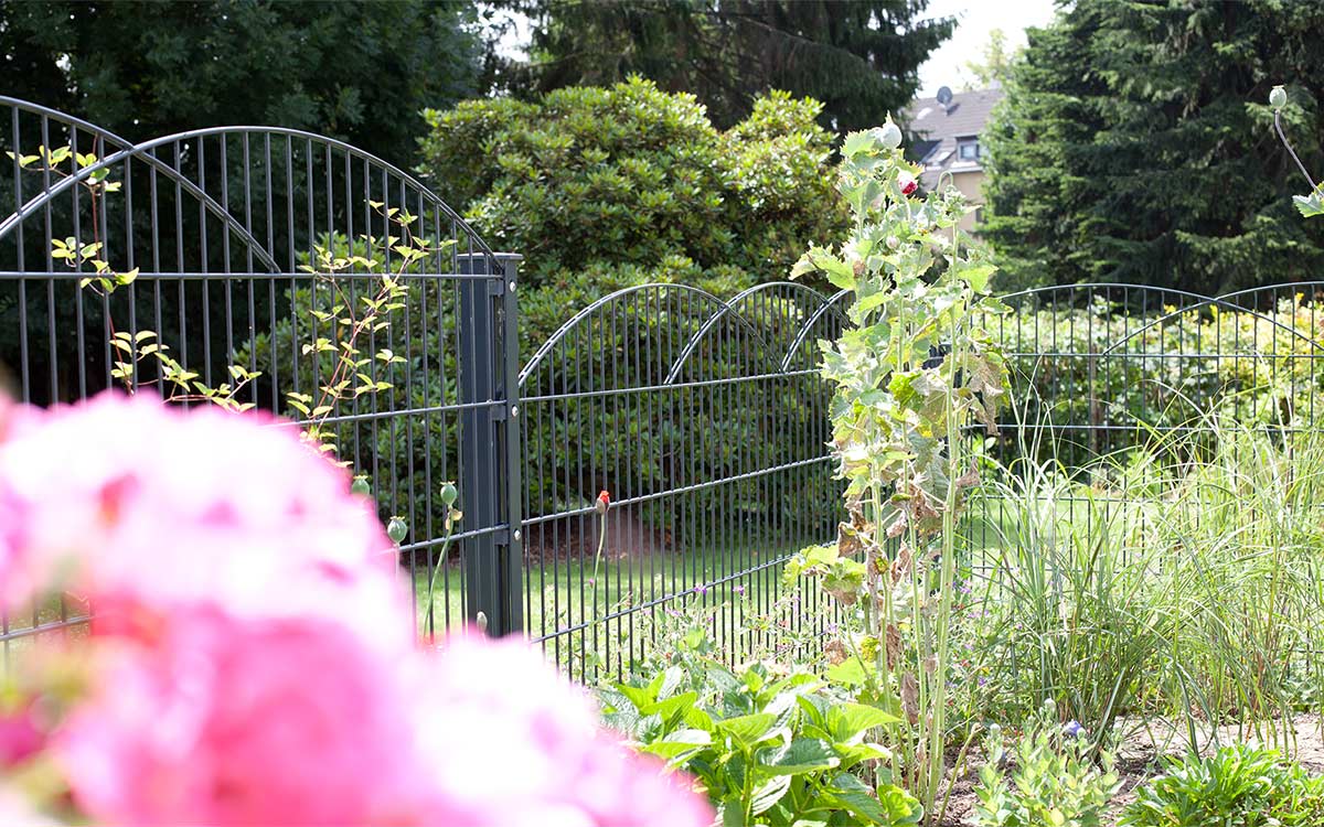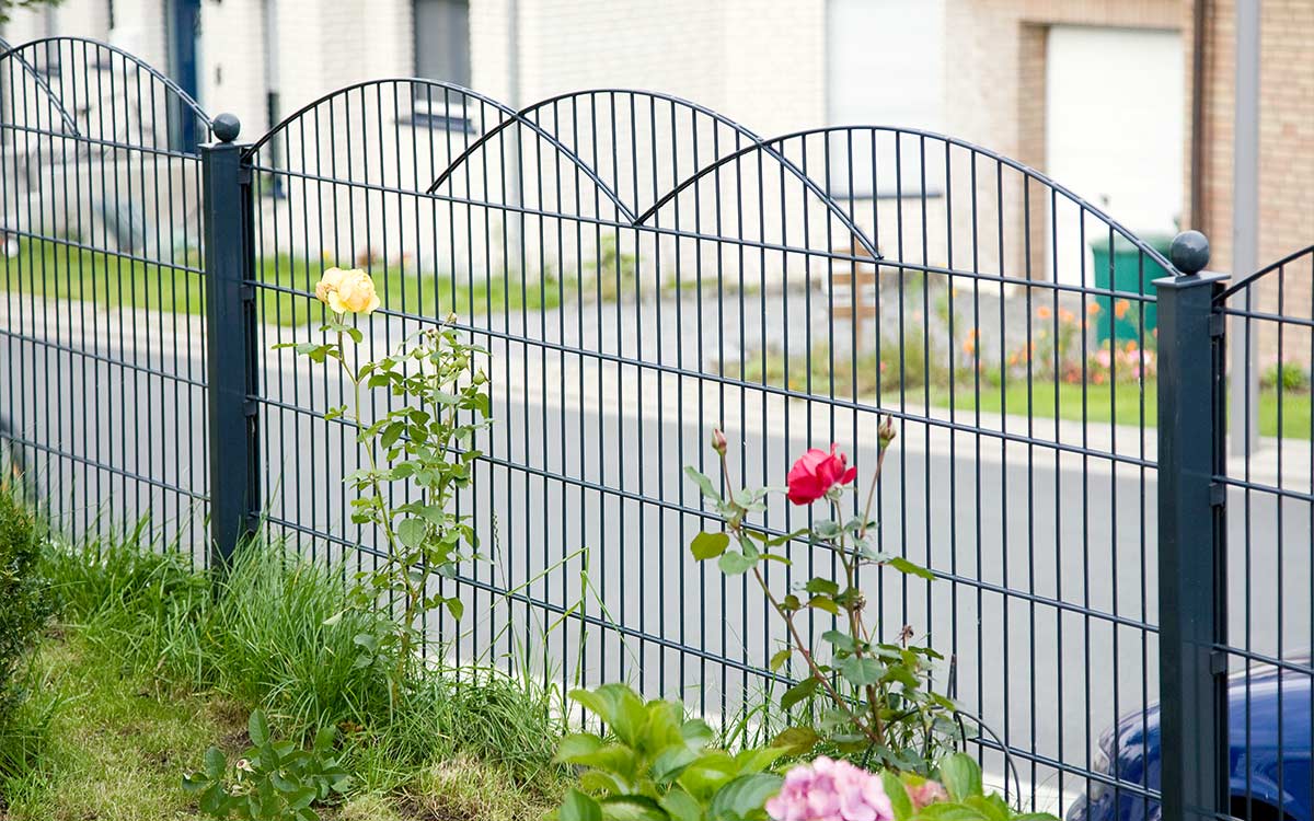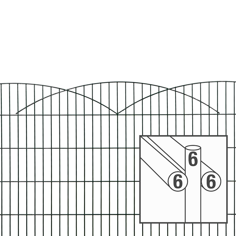 Der Schmuckzaun eignet sich für die anspruchsvolle und moderne Gartengestaltung, ohne dabei die Sicherheitsaspekte zu vernachlässigen. Die drei ineinander übergehenden Oberbögen machen den besonderen Charme des Schmuckzauns aus. Dabei wird die Höhe in der Mitte des Bogens gemessen. Die Gittermatten fallen zum Ende um 200 mm ab.
