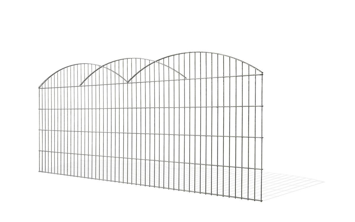 Der Schmuckzaun eignet sich für die anspruchsvolle und moderne Gartengestaltung, ohne dabei die Sicherheitsaspekte zu vernachlässigen. Die drei ineinander übergehenden Oberbögen machen den besonderen Charme des Schmuckzauns aus. Dabei wird die Höhe in der Mitte des Bogens gemessen. Die Gittermatten fallen zum Ende um 200 mm ab.
