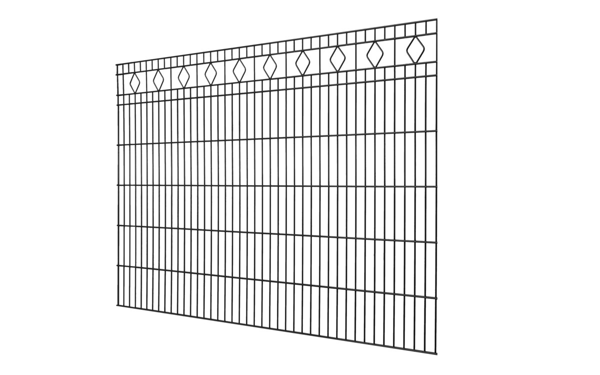 Der elegante Schmuckzaun MALAGA ist zeitlos und passt sich vielen Stilrichtungen und Bepflanzungsarten an. Dabei bietet er Schutz und wahrt die Privatsphäre. Im obersten Segment der Doppelstabgittermatte befinden sich kleine rautenförmige Zierelemente, die durch waagerechte Einfassungen hervorgehoben werden. Der Schmuckzaun MALAGA besteht aus massiven miteinander verschweißten Stahldrähten.