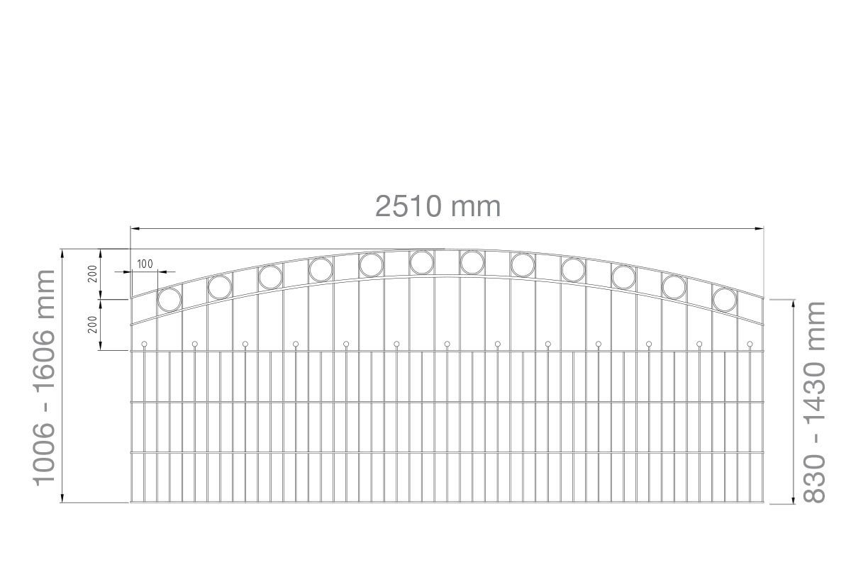 - Zaunelementhöhen inkl. Bogen von 1006 mm bis 1606 mm
