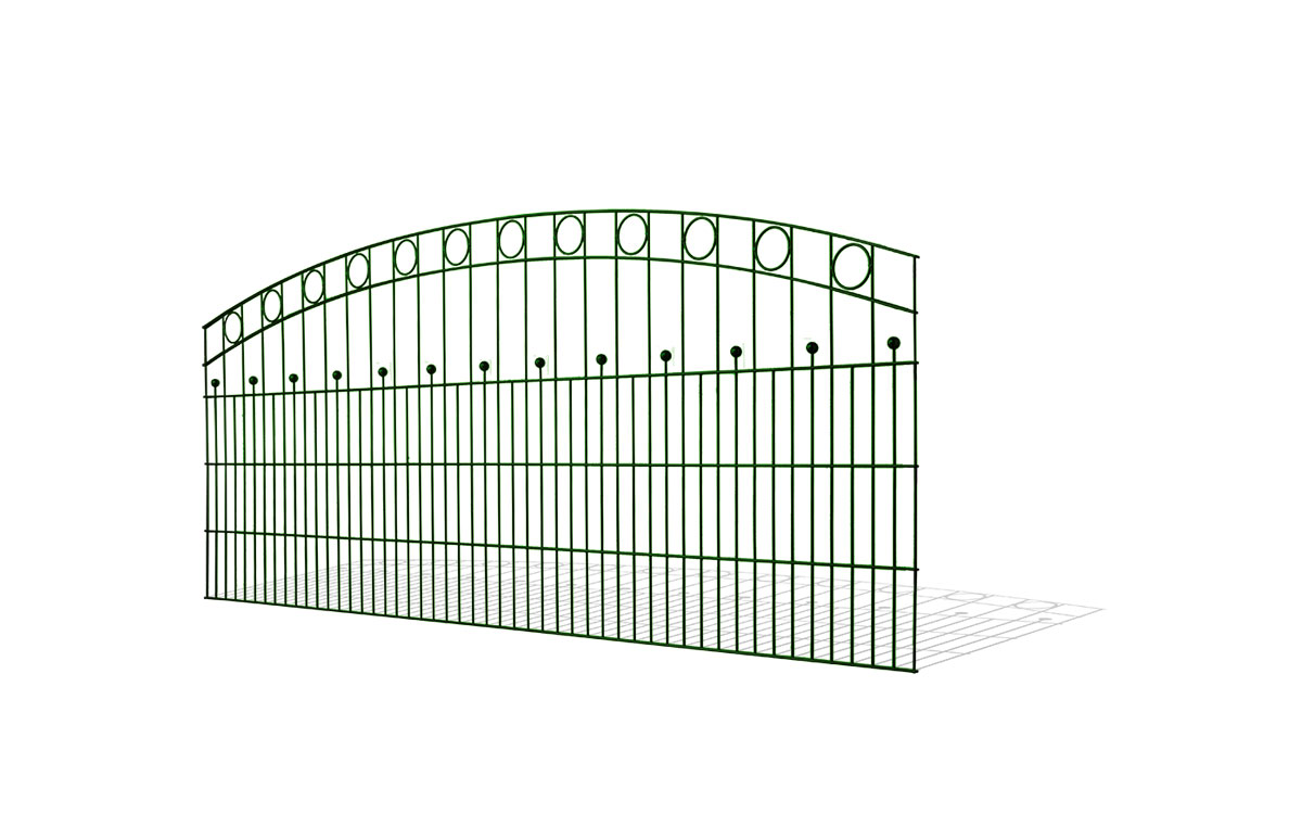 WIEN ist ein extravaganter Hingucker aus hochwertigem Doppelstabgitter. Bestechend ist der elegante Oberbogen, den im Verlauf kreisförmige Ornamente zieren. Die klassische Zierkugel ist im waagerechten Verlauf des Zauns integriert.