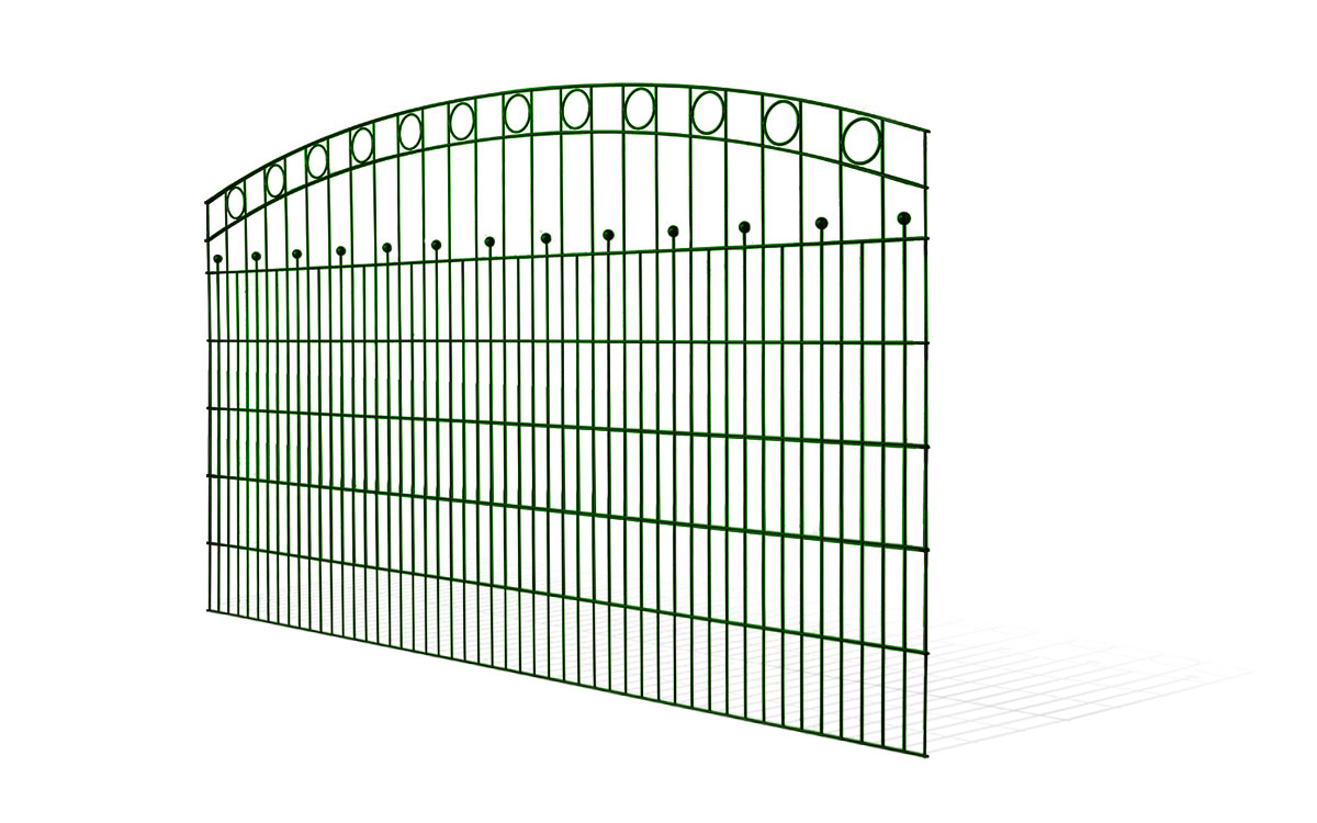 WIEN ist ein extravaganter Hingucker aus hochwertigem Doppelstabgitter. Bestechend ist der elegante Oberbogen, den im Verlauf kreisförmige Ornamente zieren. Die klassische Zierkugel ist im waagerechten Verlauf des Zauns integriert.