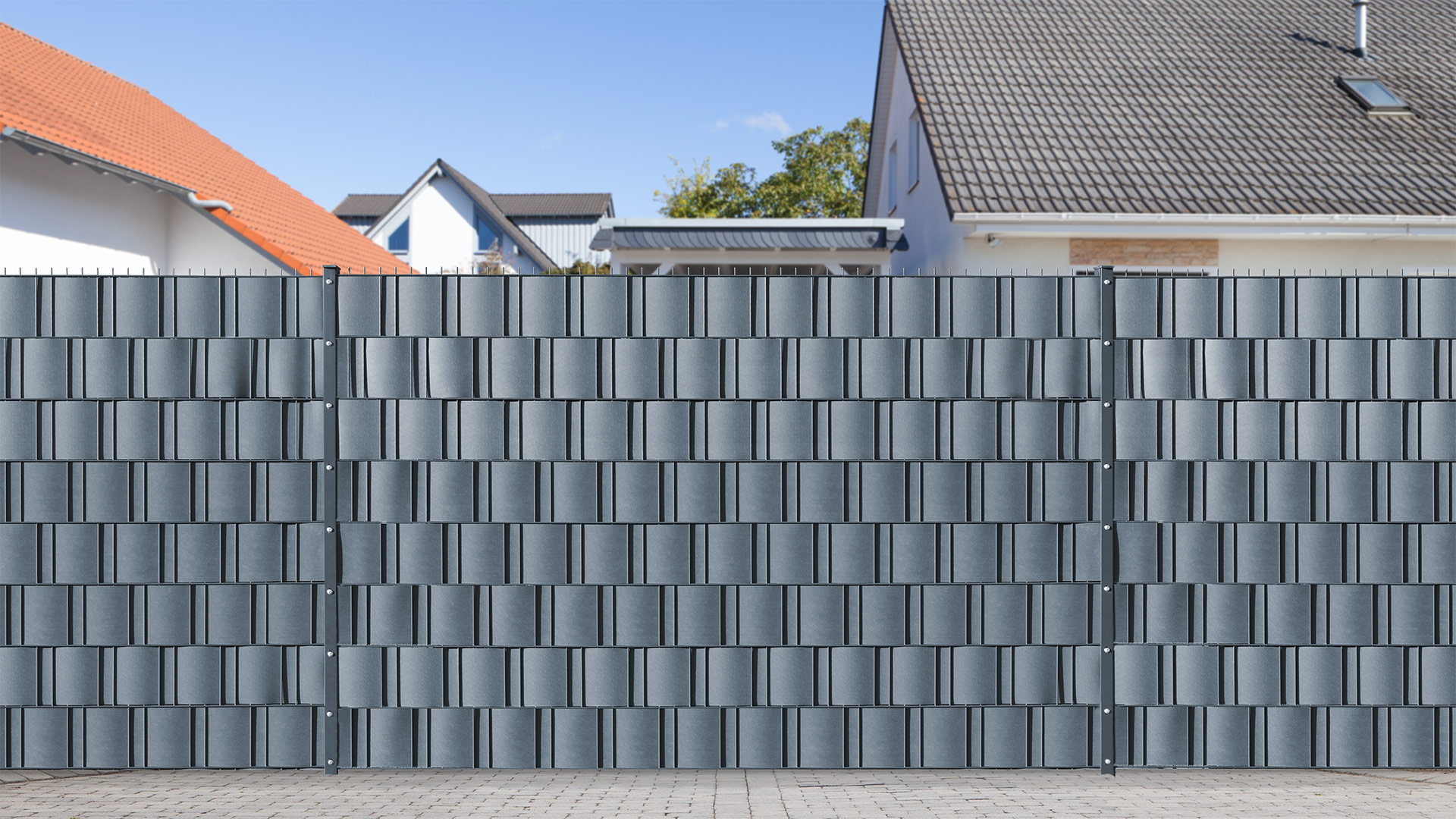 Der Sichtschutz Bastline ist vielseitig einsetzbar und wird in Doppelstabgittermatten eingeflochten. Die Fixierung erfolgt - abhängig vom gewählten Pfosten - mit Klemmschienen. Darüber hinaus kann er auch als Sichtschutz für Torflügel aus der Serie VARIO pro verwendet werden.Bastline setzt auf die Materialeigenschaft von Polyvinylchlorid (PVC). Es wird in 2,56 m langen Bahnen mit einer Höhe von 190 mm geliefert und passt somit perfekt zu fast allen Stahlgitterzäunen mit einer Maschenhöhe von ca. 200 mm. Aufgrund seiner Flexibilität und Witterungsbeständigkeit ist das Produkt schnell zu verarbeiten und langlebig. Die Materialoberfläche verfügt über formschöne Flechtungen, die für eine hochwertige Haptik und Optik sorgen. Die Flechtung hat zudem den Vorteil der Winddurchlässigkeit, so dass nicht so hohe Windlasten wie bei komplett geschlossenen Sichtschutzmaterialien entstehen.Hinweis zur Windlast:Bei der Anbringung von BLICKDICHT Deko empfehlen wir auf die örtlichen Gegebenheiten bezüglich des Windaufkommens zu achten und für die passende Statik des Zauns Sorge zu tragen.Bitte kontaktieren Sie hierzu sowie bei allen anderen Fragen und Motivwünschen gerne unsere Verkäufer. Diese beraten Sie kompetent und unverbindlich in allen Fragen rund um Ihre neue Zaunanlage, denn bei uns macht Zaunkauf Spaß!