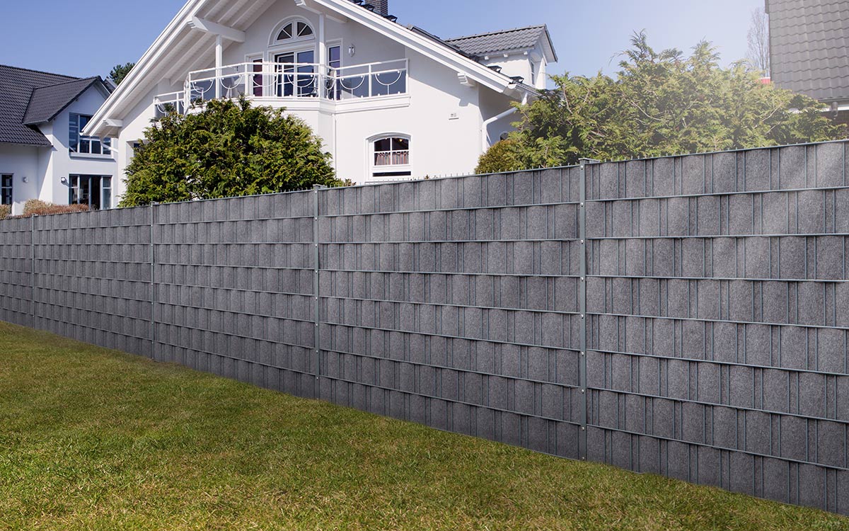 Der Sichtschutz Bastline ist vielseitig einsetzbar und wird in Doppelstabgittermatten eingeflochten. Die Fixierung erfolgt - abhängig vom gewählten Pfosten - mit Klemmschienen. Darüber hinaus kann er auch als Sichtschutz für Torflügel aus der Serie VARIO pro verwendet werden.Bastline setzt auf die Materialeigenschaft von Polyvinylchlorid (PVC). Es wird in 2,56 m langen Bahnen mit einer Höhe von 190 mm geliefert und passt somit perfekt zu fast allen Stahlgitterzäunen mit einer Maschenhöhe von ca. 200 mm. Aufgrund seiner Flexibilität und Witterungsbeständigkeit ist das Produkt schnell zu verarbeiten und langlebig. Die Materialoberfläche verfügt über formschöne Flechtungen, die für eine hochwertige Haptik und Optik sorgen. Die Flechtung hat zudem den Vorteil der Winddurchlässigkeit, so dass nicht so hohe Windlasten wie bei komplett geschlossenen Sichtschutzmaterialien entstehen.Hinweis zur Windlast:Bei der Anbringung von BLICKDICHT Deko empfehlen wir auf die örtlichen Gegebenheiten bezüglich des Windaufkommens zu achten und für die passende Statik des Zauns Sorge zu tragen.Bitte kontaktieren Sie hierzu sowie bei allen anderen Fragen und Motivwünschen gerne unsere Verkäufer. Diese beraten Sie kompetent und unverbindlich in allen Fragen rund um Ihre neue Zaunanlage, denn bei uns macht Zaunkauf Spaß!