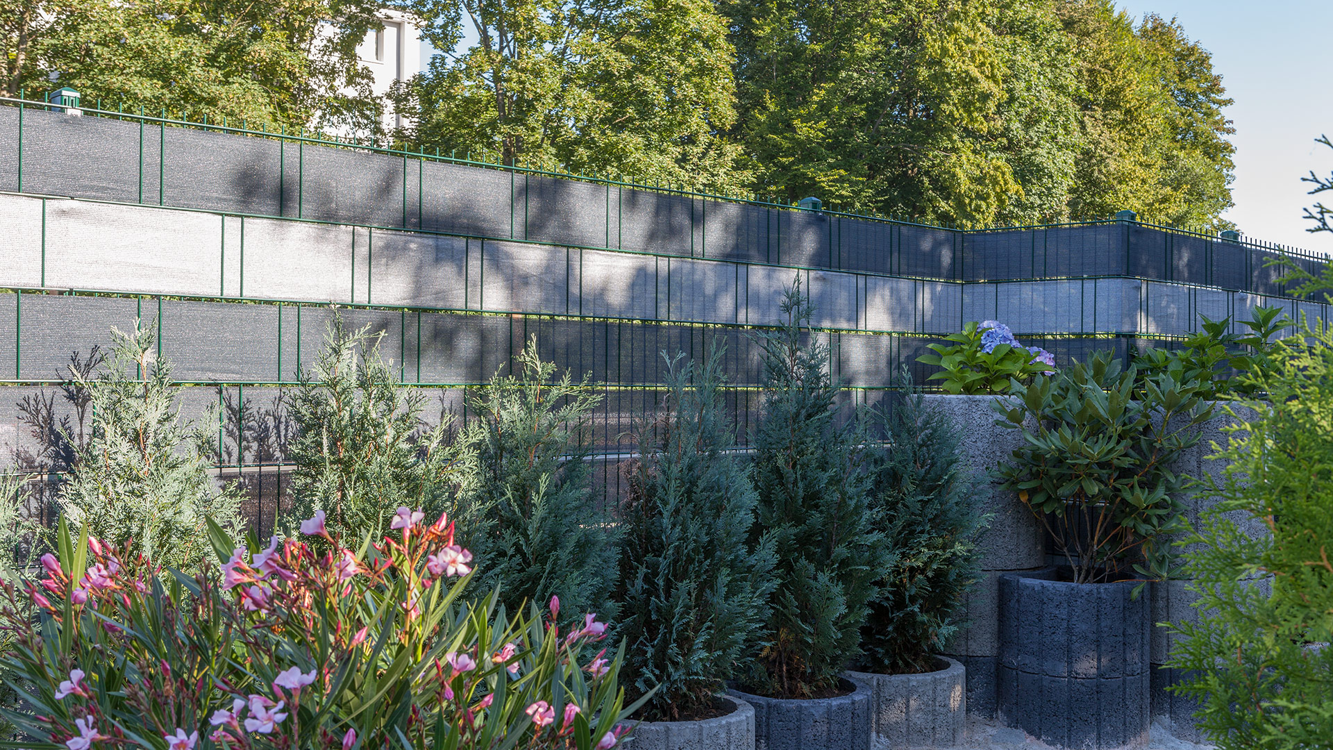 Das verwendete Material hat eine UV-Stabilität von 3-4 Jahren. Somit eignet sich der Sichtschutz besonders für eine offene Gartengestaltung, die dennoch Diskretion bietet. Nach dem Einflechten wird der Sichtschutz um den letzten Draht zurückgeschlagen und am vorletztem Draht mit einer Klemmschiene befestigt. Die Klemmschienen sind erhältlich in passenden Farbtönen Grün, Schwarz und Grau. (Artikelnummern: ZBDK6005, ZBDK9005 und ZBDK7004). |PP| polylstripe empfehlen wir auf die örtlichen Gegebenheiten bezüglich des Windaufkommens zu achten und für die passende Statik des Zauns Sorge zu tragen.