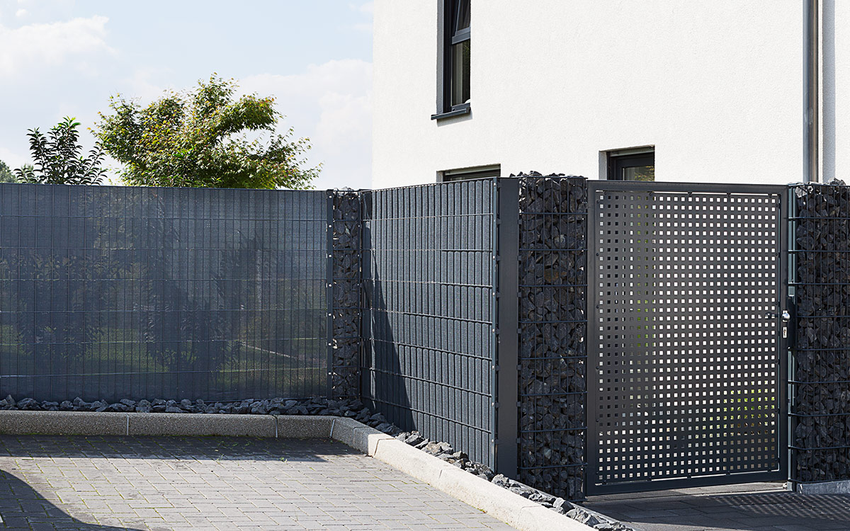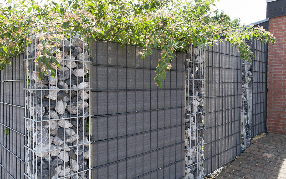 Der Sichtschutz Bastline ist vielseitig einsetzbar und wird in Doppelstabgittermatten eingeflochten. Die Fixierung erfolgt - abhängig vom gewählten Pfosten - mit Klemmschienen. Darüber hinaus kann er auch als Sichtschutz für Torflügel aus der Serie VARIO pro verwendet werden.Bastline setzt auf die Materialeigenschaft von Polyvinylchlorid (PVC). Es wird in 2,56 m langen Bahnen mit einer Höhe von 190 mm geliefert und passt somit perfekt zu fast allen Stahlgitterzäunen mit einer Maschenhöhe von ca. 200 mm. Aufgrund seiner Flexibilität und Witterungsbeständigkeit ist das Produkt schnell zu verarbeiten und langlebig. Die Materialoberfläche verfügt über formschöne Flechtungen, die für eine hochwertige Haptik und Optik sorgen. Die Flechtung hat zudem den Vorteil der Winddurchlässigkeit, so dass nicht so hohe Windlasten wie bei komplett geschlossenen Sichtschutzmaterialien entstehen.Hinweis zur Windlast:Bei der Anbringung von BLICKDICHT Deko empfehlen wir auf die örtlichen Gegebenheiten bezüglich des Windaufkommens zu achten und für die passende Statik des Zauns Sorge zu tragen.Bitte kontaktieren Sie hierzu sowie bei allen anderen Fragen und Motivwünschen gerne unsere Verkäufer. Diese beraten Sie kompetent und unverbindlich in allen Fragen rund um Ihre neue Zaunanlage, denn bei uns macht Zaunkauf Spaß!