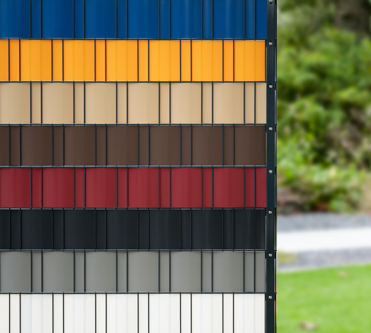 Technische Daten:Streifenhöhe: 190 mmStreifenlänge: 2560 mmFarbe: silber (glänzend)ACHTUNG: Doppelstabgitterzaun MAX nur mit Klemmschiene für Sichtschutzstreifen möglich! Der Sichtschutz Bastline ist vielseitig einsetzbar und wird in Doppelstabgittermatten eingeflochten. Die Fixierung erfolgt - abhängig vom gewählten Pfosten - mit Klemmschienen. Darüber hinaus kann er auch als Sichtschutz für Torflügel aus der Serie VARIO pro verwendet werden.Bastline setzt auf die Materialeigenschaft von Polyvinylchlorid (PVC). Es wird in 2,56 m langen Bahnen mit einer Höhe von 190 mm geliefert und passt somit perfekt zu fast allen Stahlgitterzäunen mit einer Maschenhöhe von ca. 200 mm. Aufgrund seiner Flexibilität und Witterungsbeständigkeit ist das Produkt schnell zu verarbeiten und langlebig. Die Materialoberfläche verfügt über formschöne Flechtungen, die für eine hochwertige Haptik und Optik sorgen. Die Flechtung hat zudem den Vorteil der Winddurchlässigkeit, so dass nicht so hohe Windlasten wie bei komplett geschlossenen Sichtschutzmaterialien entstehen.Hinweis zur Windlast:Bei der Anbringung von BLICKDICHT Deko empfehlen wir auf die örtlichen Gegebenheiten bezüglich des Windaufkommens zu achten und für die passende Statik des Zauns Sorge zu tragen.Bitte kontaktieren Sie hierzu sowie bei allen anderen Fragen und Motivwünschen gerne unsere Verkäufer. Diese beraten Sie kompetent und unverbindlich in allen Fragen rund um Ihre neue Zaunanlage, denn bei uns macht Zaunkauf Spaß!