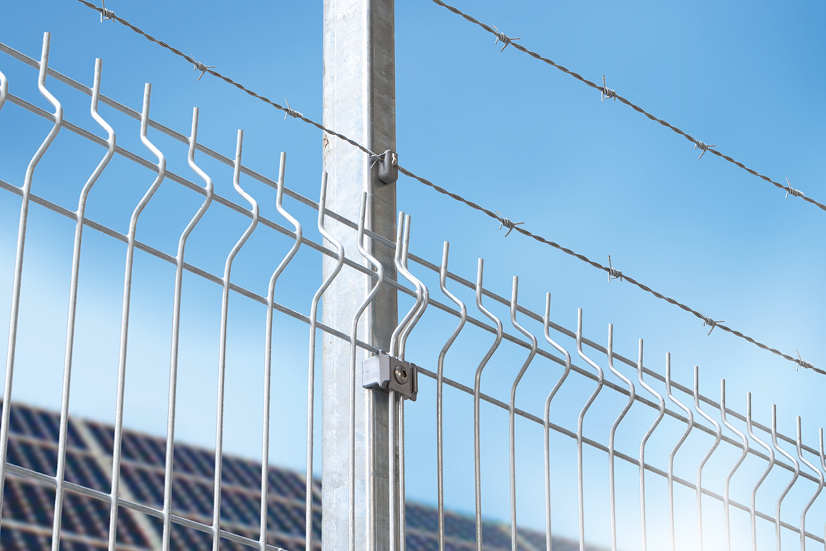 Die 3D-Gittermatte eignet sich besonders für große Zaunanlagen wie die Einfriedung von Solarparks oder ähnlichem.
