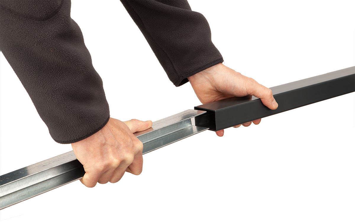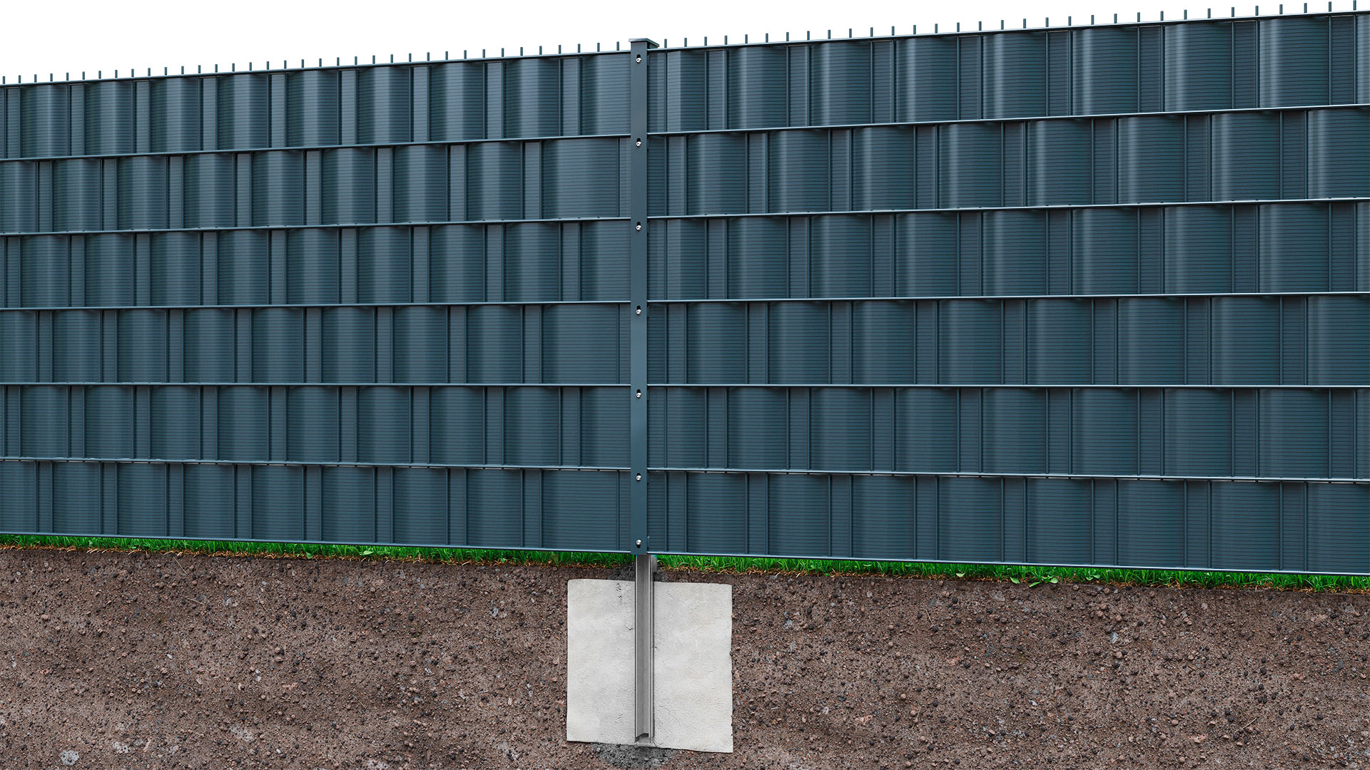 Durch das Einflechten von Sichtschutz erhöht sich die Windlast am Zaun. Damit die Zaunpfosten den zusätzlichen Belastungen standhalten, empfiehlt sich eine Verstärkung der Pfosten. Unsere Pfostenverstärkung wird einfach in den vorhandenen Pfosten gesteckt, der dadurch auch starker Windbelastung standhält.