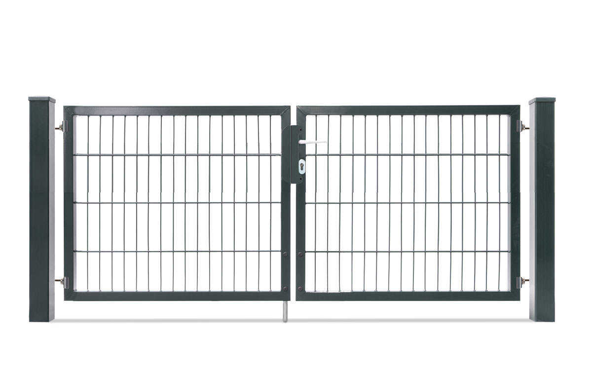 Das zweiflüglige Einfahrtstor VARIO compact lässt Sie die Öffnungsrichtung nach DIN links und rechts durch entsprechende Pfostenmontage bestimmen. Darüber hinaus besteht durch den innovativen Anschlag die Möglichkeit, den Öffnungswinkel zwischen 90° und 180° frei zu wählen. Das variable Einfahrtstor kommt als Komplettpaket mit Doppelstabfüllung von 6/5/6 mm, einem Rahmen von 40/40 mm und den zugehörigen Torpfosten von 80/80 mm zu Ihnen nach Hause. Aus zahlreichen Torhöhen von 800 mm bis 2000 mm können Sie das für Sie passende Tor auswählen, das eine Breite von 200 - 356 cm hat.