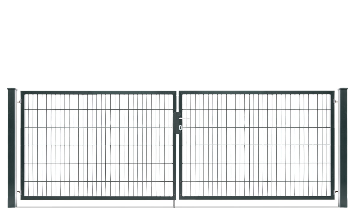 Das zweiflüglige Einfahrtstor VARIO compact lässt Sie die Öffnungsrichtung nach DIN links und rechts durch entsprechende Pfostenmontage bestimmen. Darüber hinaus besteht durch den innovativen Anschlag die Möglichkeit, den Öffnungswinkel zwischen 90° und 180° frei zu wählen. Das variable Einfahrtstor kommt als Komplettpaket mit Doppelstabfüllung von 6/5/6 mm, einem Rahmen von 40/40 mm und den zugehörigen Torpfosten von 80/80 mm zu Ihnen nach Hause. Aus zahlreichen Torhöhen von 800 mm bis 2000 mm können Sie das für Sie passende Tor auswählen, das eine Breite von 200 - 356 cm hat.