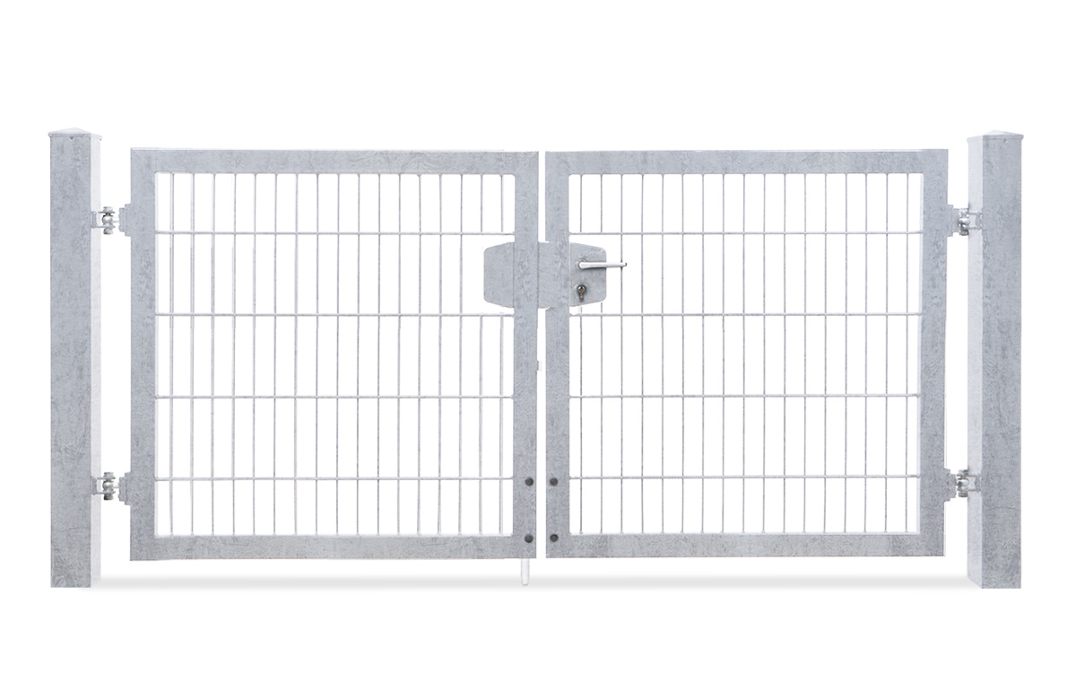 Das zweiflügelige Einfahrtstor VARIO trend lässt Sie die Öffnungsrichtung nach DIN links und rechts durch entsprechende Pfostenmontage bestimmen. Das variable Einfahrtstor kommt als Komplettpaket mit Doppelstabfüllung von 8/6/8mm, einem Rahmen von 60/40 mm und den zugehörigen Torpfosten je nach Höhe des Tores von 60/60 mm oder 80/80 mm zu Ihnen nach Hause. Aus zahlreichen Torhöhen und Torbreiten können Sie das für Sie passende Tor auswählen.
