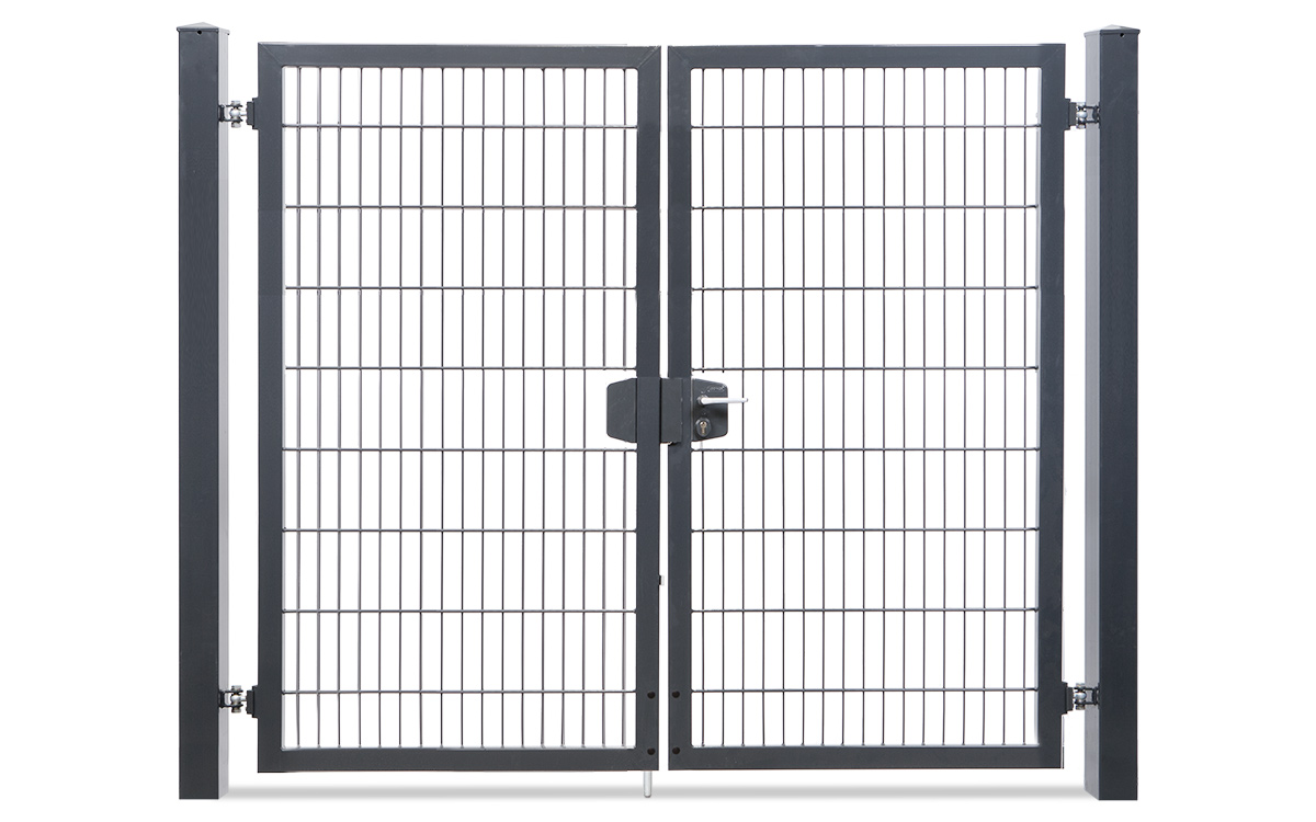 Das zweiflügelige Einfahrtstor VARIO trend lässt Sie die Öffnungsrichtung nach DIN links und rechts durch entsprechende Pfostenmontage bestimmen. Das variable Einfahrtstor kommt als Komplettpaket mit Doppelstabfüllung von 8/6/8mm, einem Rahmen von 60/40 mm und den zugehörigen Torpfosten je nach Höhe des Tores von 60/60 mm oder 80/80 mm zu Ihnen nach Hause. Aus zahlreichen Torhöhen und Torbreiten können Sie das für Sie passende Tor auswählen.