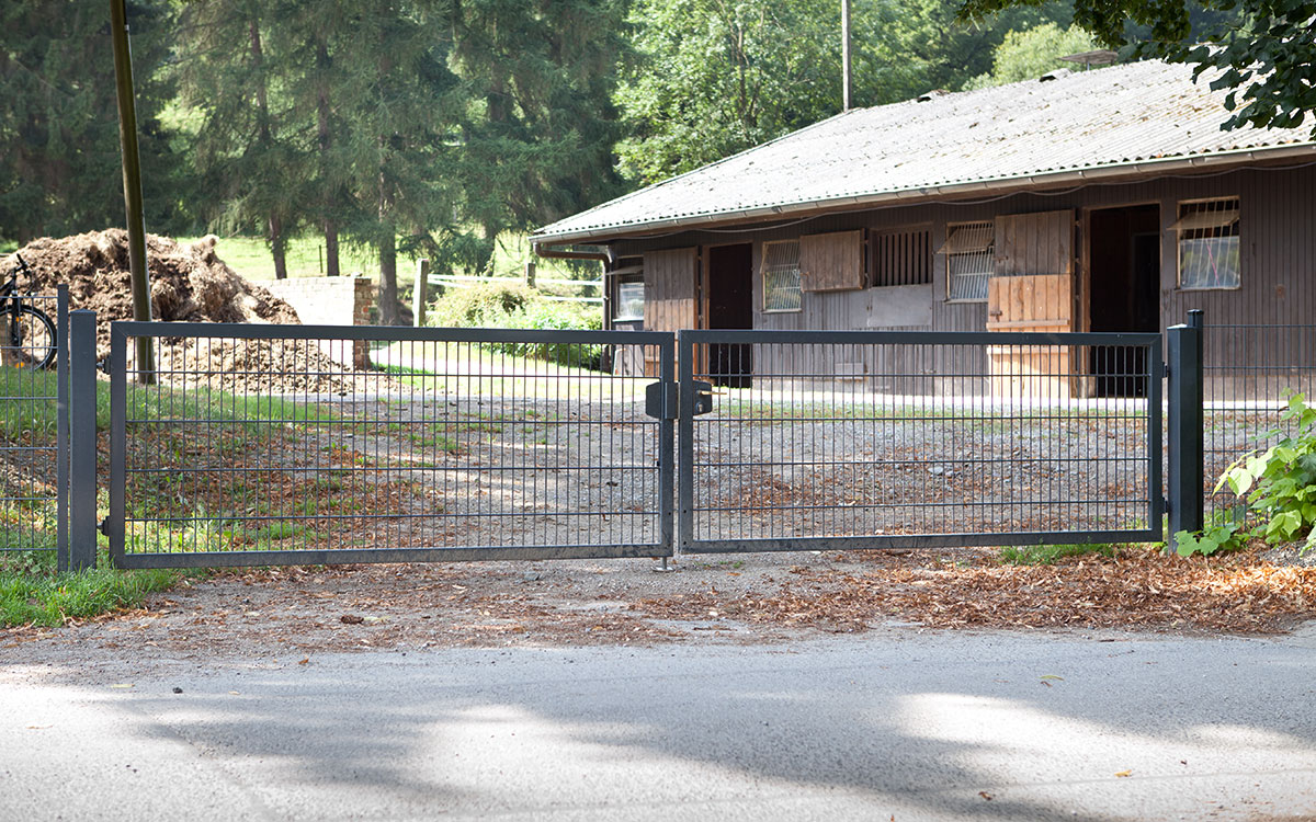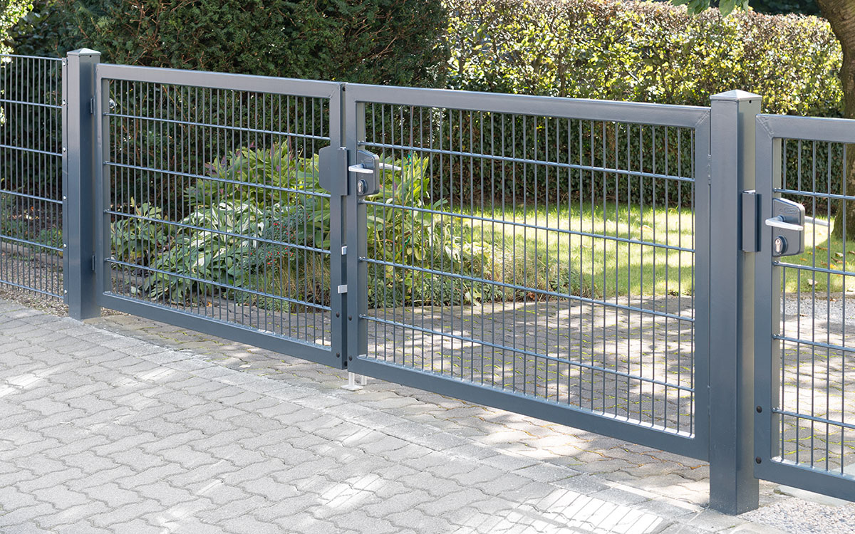 Das hochwertige Drehflügeltor ist durch seine 180 Grad Scharniere sehr flexibel und kann ganz nach Ihren Wünschen kombiniert werden. Besonderheiten sind die dreidimensional verstellbaren Bänder und das hochwertige Locinox-Schloss.