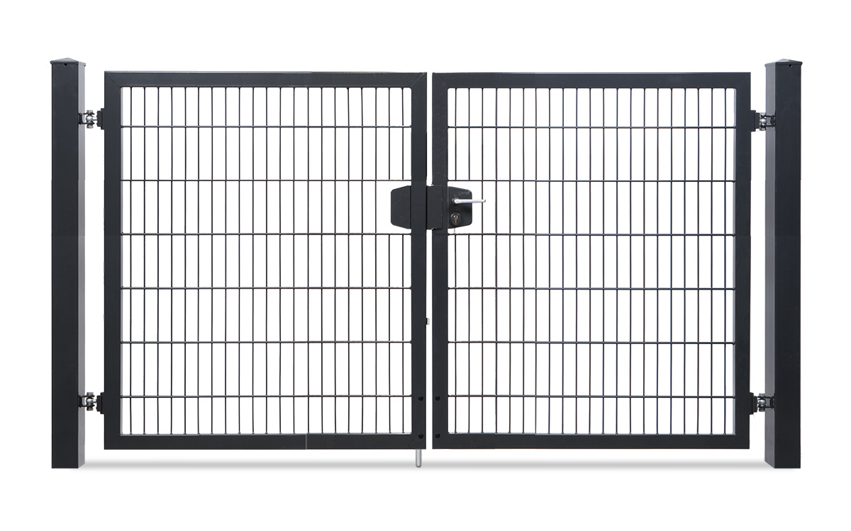 Das zweiflügelige Einfahrtstor VARIO trend lässt Sie die Öffnungsrichtung nach DIN links und rechts durch entsprechende Pfostenmontage bestimmen. Das variable Einfahrtstor kommt als Komplettpaket mit Doppelstabfüllung von 8/6/8mm, einem Rahmen von 60/40 mm und den zugehörigen Torpfosten je nach Höhe des Tores von 60/60 mm oder 80/80 mm zu Ihnen nach Hause. Aus zahlreichen Torhöhen und Torbreiten können Sie das für Sie passende Tor auswählen.
