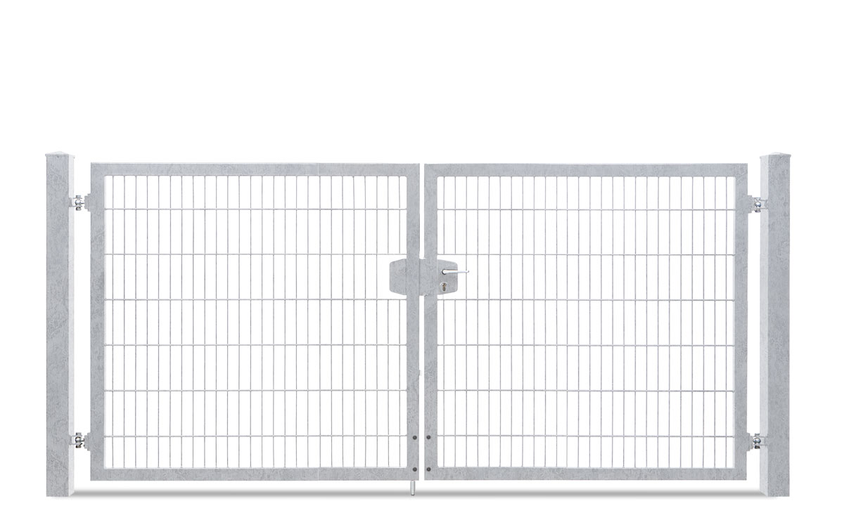 Das zweiflügelige Einfahrtstor VARIO trend lässt Sie die Öffnungsrichtung nach DIN links und rechts durch entsprechende Pfostenmontage bestimmen. Das variable Einfahrtstor kommt als Komplettpaket mit Doppelstabfüllung von 8/6/8mm, einem Rahmen von 60/40 mm und den zugehörigen Torpfosten je nach Höhe des Tores von 60/60 mm oder 80/80 mm zu Ihnen nach Hause. Aus zahlreichen Torhöhen und Torbreiten können Sie das für Sie passende Tor auswählen.